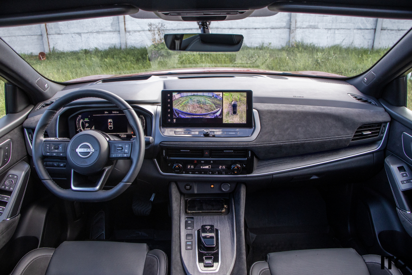 В топовых версиях Nissan Qashqai больше о «умном комфорте» и лишь немного о шоу: лаконичная передняя панель, отдельный экран мультимедиа и физические кнопки климата создают дружественный, понятный интерфейс. Мягкие материалы, вставки из Alcantara или кожи на панели и дверях добавляют премиального оттенка, но без чрезмерного глянца. Интерьер выглядит аккуратно и сдержанно, с хорошей эргономикой и ощущением продуманности.
