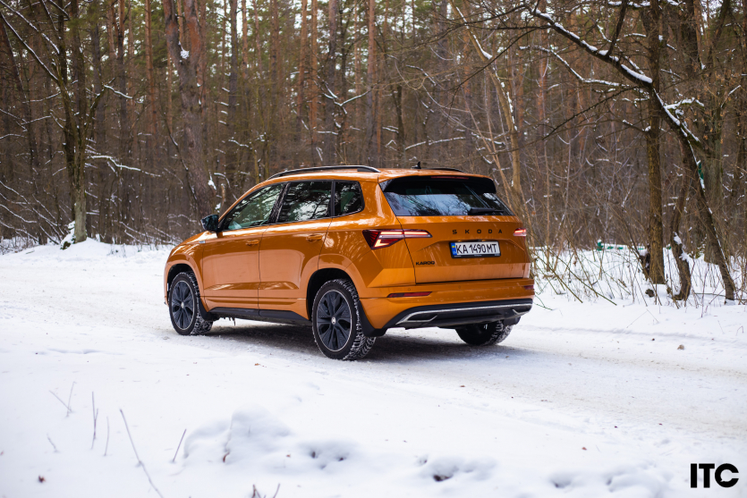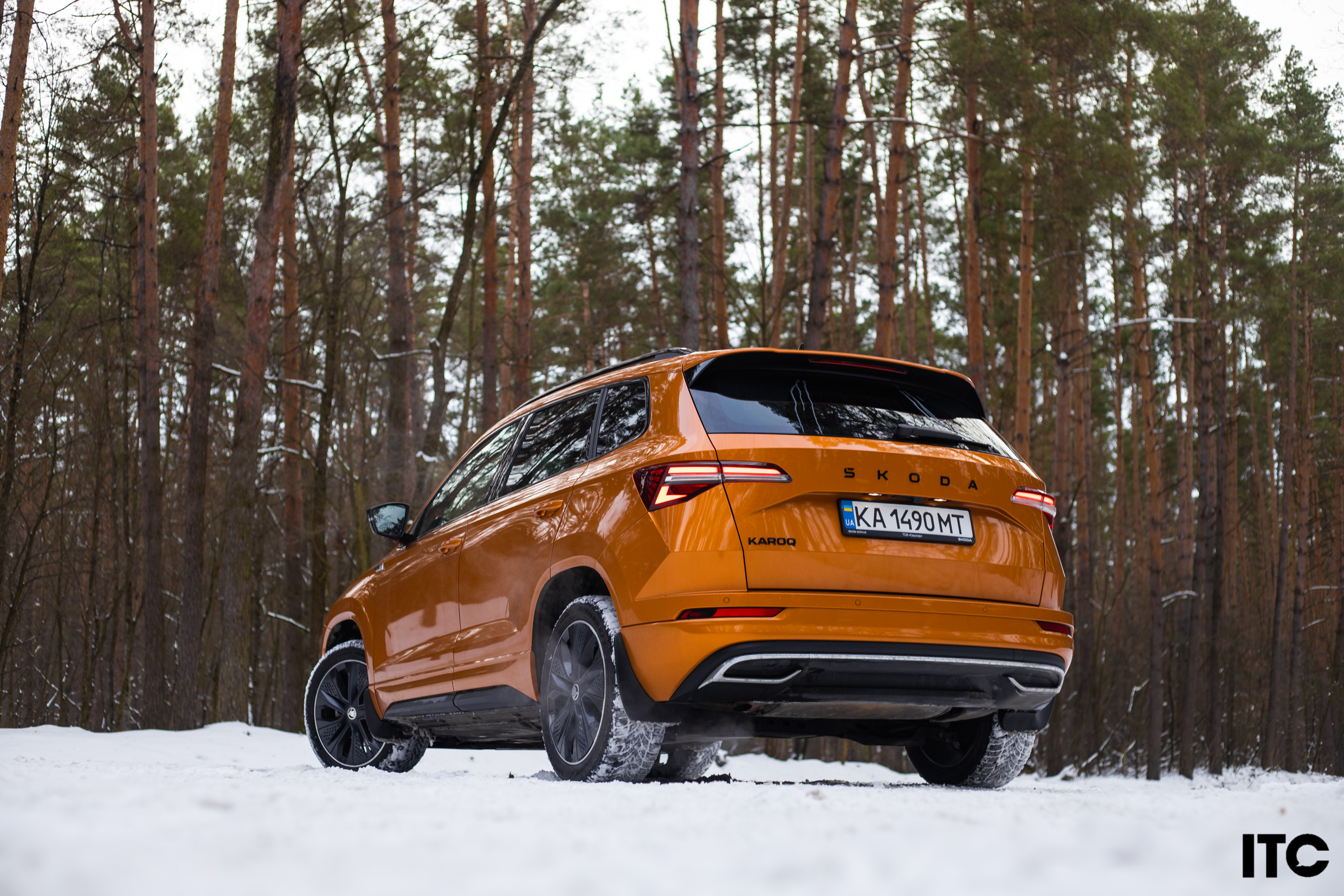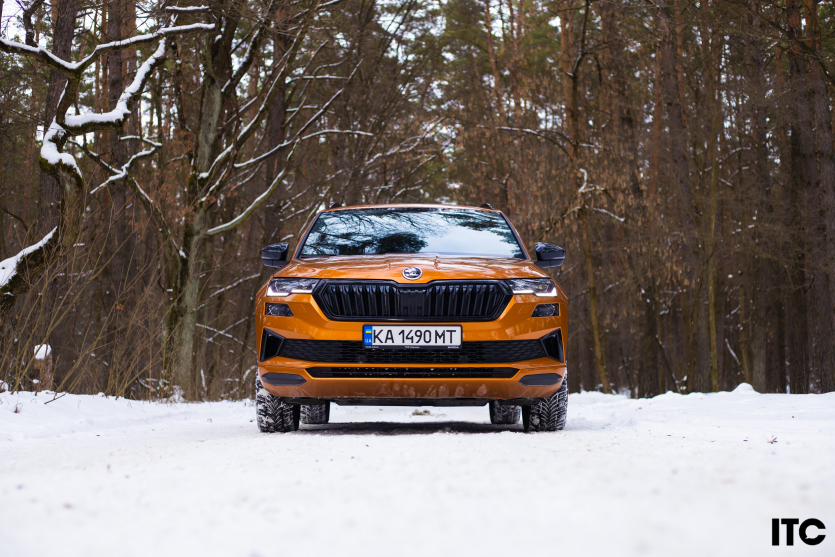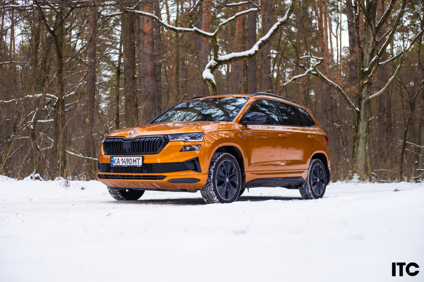 Если VW вообще не заинтересовал подругу, то Skoda для нее оказалась более интересной. Украинский рынок знает Karoq как один из самых сбалансированных кроссоверов компактного класса: доступные бензиновые двигатели, умеренный расход, продуманный салон, большой багажник — и все это за цену, которая традиционно ниже тех же Toyota Corolla Cross или других японцев в похожем оснащении. Стоимость бензиновой версии 1.4 TSI в паре с гидротрансформатором на 8 ступеней стартует с 1 263 000 грн, а за топовый SportLine просят всего 1 491 650 грн. Более того, именно он оказался запланированным у меня на осмотре.