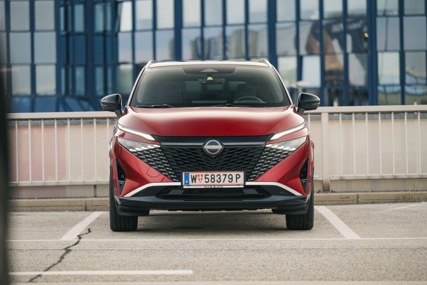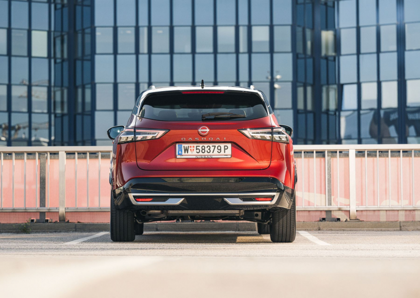 Nissan Qashqai встретил нас космическим взглядом узких диодных фар и магической решетки радиатора, которая словно гипнотизирует. Он выглядит как «правильный» городской кроссовер с легким оттенком футуризма: обновленная решетка радиатора с фактурным хромом, разделенная оптика и острые формы придают ему выразительный, но не кричащий силуэт. В профиле он сохраняет классические пропорции семейного SUV, с аккуратной линией крыши и мускулистыми колесными арками, так что машина узнаваема и не утомляет со временем. Сзади переработанные фонари с четкими контурами и динамичными «поворотниками» добавляют ощущение современности, а широкие двери, почти раскрывающиеся на 90 градусов, подчеркивают практический характер дизайна.
