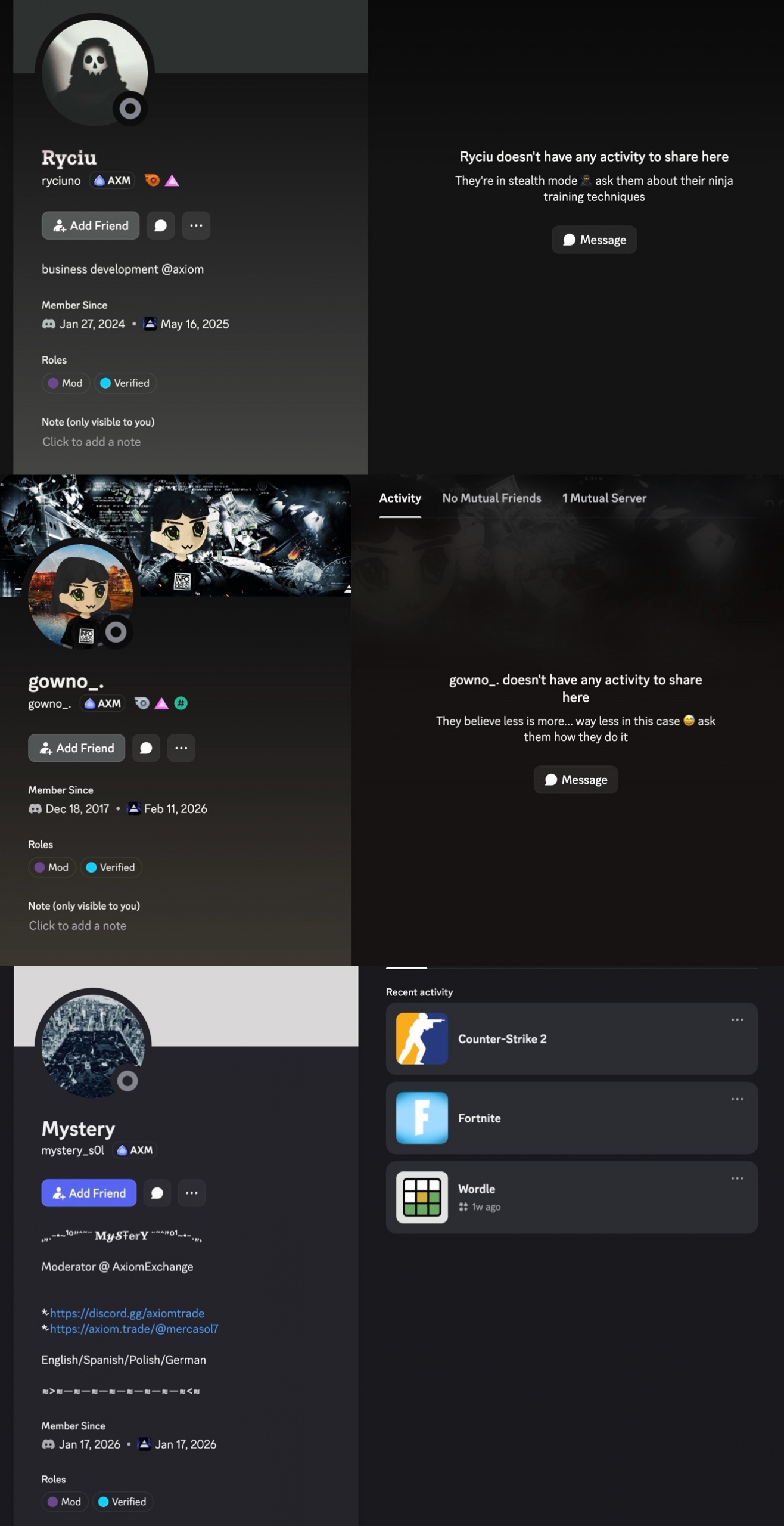 В качестве отдельного кейса в феврале 2026 года на записи частного разговора обсуждалась схема потенциального заработка около $200 тыс. с использованием служебного доступа. По утверждению исследователя, подобная активность могла продолжаться с начала 2025 года. В компании Axiom заявили, что были шокированы и разочарованы выявленными фактами. Доступ к внутренним инструментам уже ограничен, а лиц, причастных к возможным нарушениям, пообещали привлечь к ответственности. Детектив ZachXBT был привлечен для независимого расследования вероятных нарушений в Axiom, и эти выводы являются результатом этого расследования. Ранее в тот день он обратился к команде Axiom за комментарием, их заявление добавлено… Их заявление добавлено.