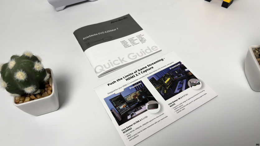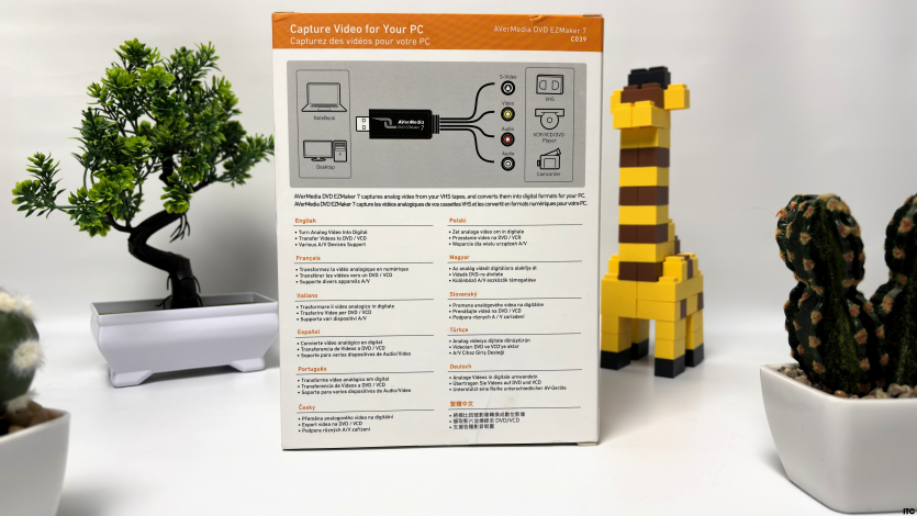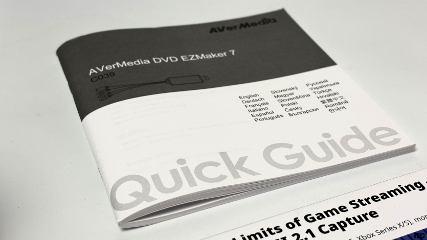 AVerMedia DVD EZMaker 7 не включает дополнительных кабелей RCA или S-Video, адаптеров или переходников, поэтому их придется иметь отдельно или приобрести. Для пользователей, которые уже имеют источник сигнала с соответствующими выходами, комплект вполне адекватный.