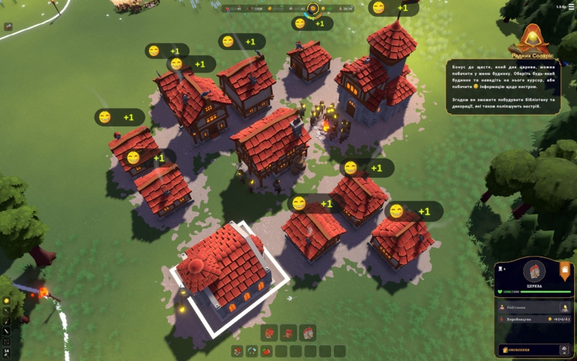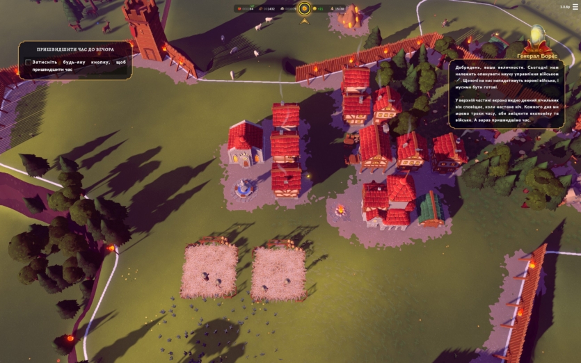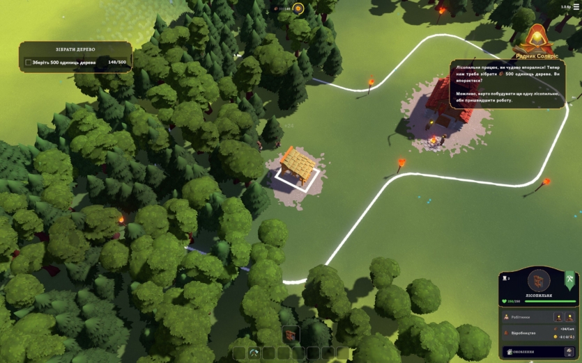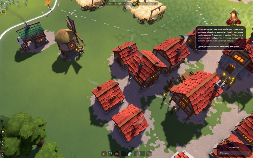 Днем Becastled превращается в почти медитативный градостроительный симулятор. Вы возводите фермы, рынки, кузницы, прокладываете дороги, следите за запасами древесины, золота, железа и других ресурсов. Нет ощущения суеты — все подается в спокойном темпе. Каждая клеточка карты имеет собственные особенности: где-то можно добывать рыбу, где-то железо или камень. Это мотивирует планировать расширение территории: захватывать новые зоны, строить склады и развивать инфраструктуру.