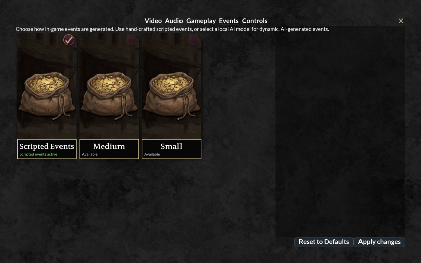 Отдельно стоит упомянуть использование ИИ. В игре применена локальная языковая модель для генерации событий и динамических историй, а также генеративные инструменты для части 2D-текстур, портретов и UI-элементов. Это ощущается и имеет как плюсы, так и минусы, о которых поговорим ниже.