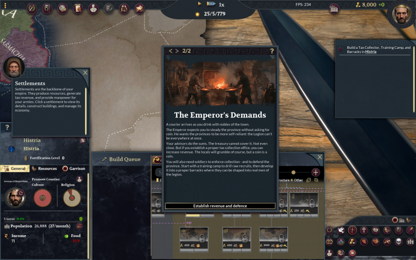 Fall of an Empire сразу ставит игрока в нестабильное положение, так как вы захватили трон в результате переворота, но управляете государством с пустой казной, истощенными легионами и провинциями, кипящими недовольством.