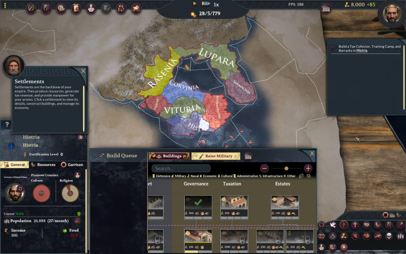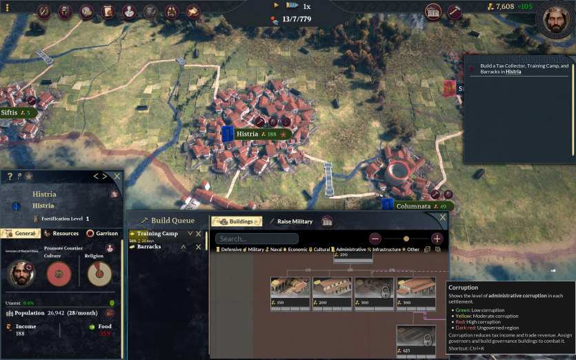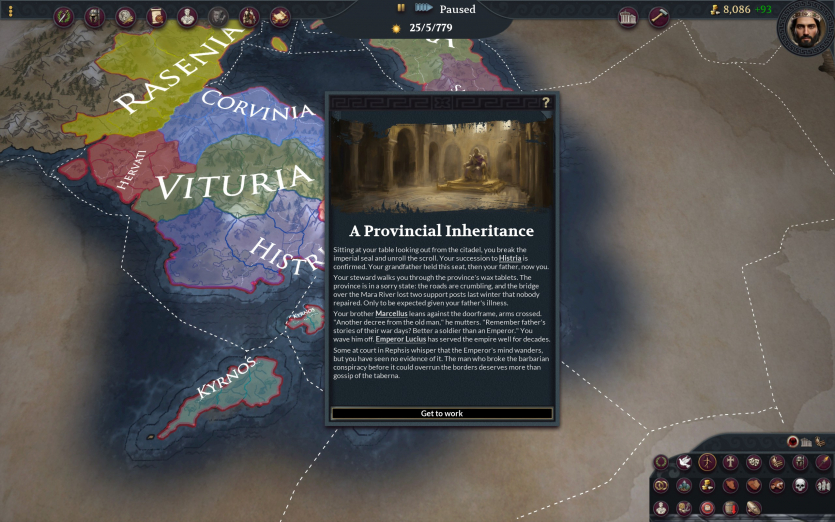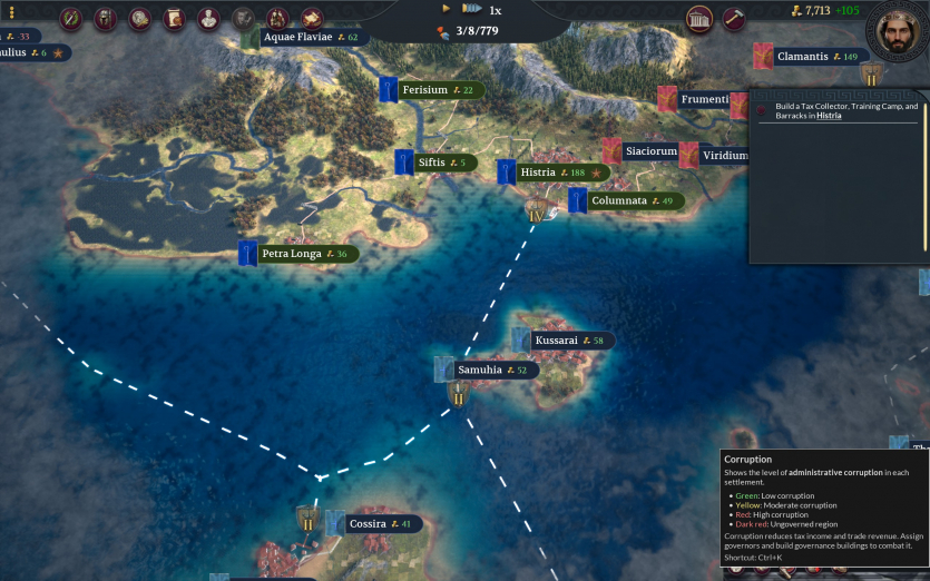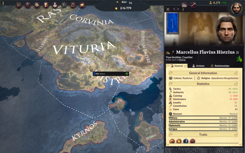 Одним из центральных элементов игры являются ее персонажи. Сенаторы, генералы, губернаторы, шпионы — каждый имеет собственные черты, амбиции и переменные лояльности. Они здесь не просто один из параметров, которые надо учитывать, а источник реальных событий. Генерал может постареть, озлобиться и предать, сенатор разжечь интригу, а лоялист — требовать награды за преданность. То есть империя функционирует как реальный социальный организм, где каждое звено играет свою роль.