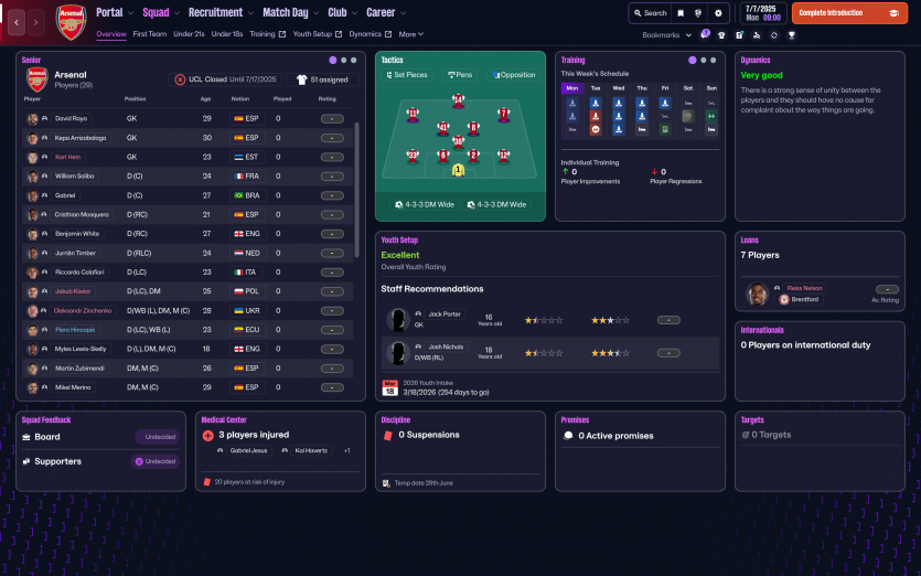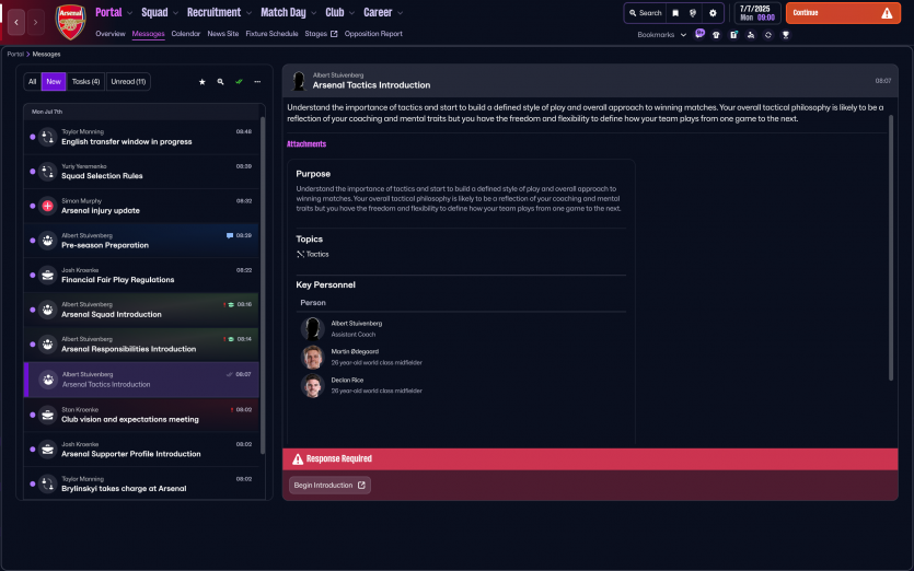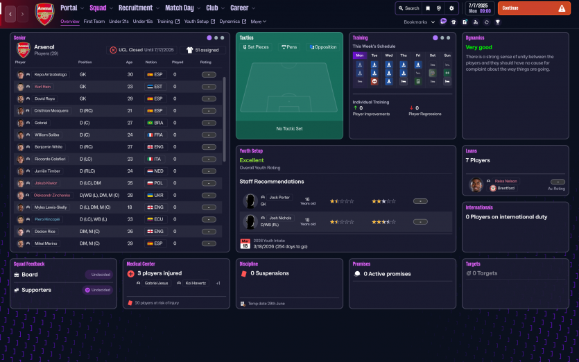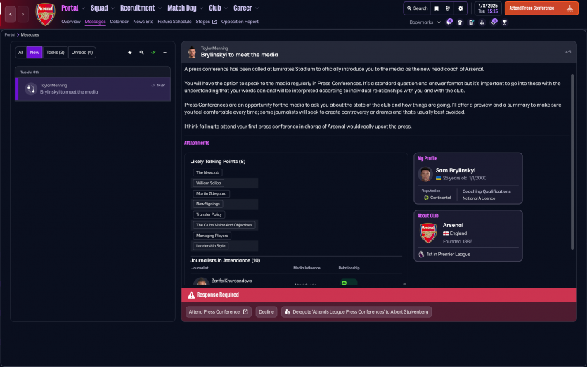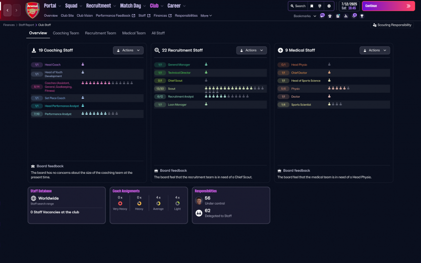 Отдельного внимания заслуживает работа с персоналом. Ассистенты, аналитики и тренеры теперь действительно ощущаются как часть штаба. Они предлагают релевантные советы, например, изменение роли игрока или пересмотр нагрузки на тренировках. Эти рекомендации можно быстро принять или отклонить прямо из панели задач без открытия дополнительных окон.