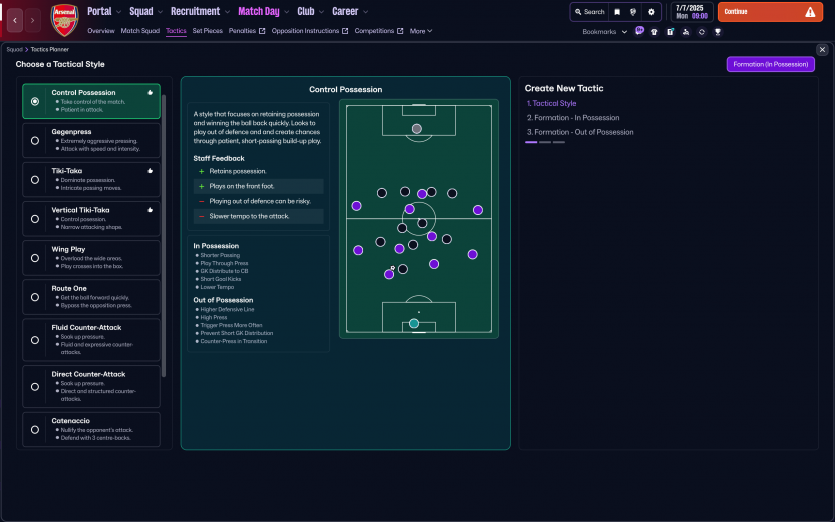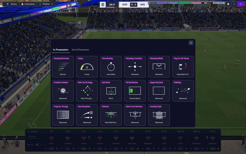 В обновленной системе тактики исчезла необходимость вручную балансировать каждый ползунок. Каждое изменение стиля игры (от контрпрессинга до контроля владения мячом) автоматически подтягивает логические инструкции. В то же время для опытных менеджеров остались расширенные параметры, которые при желании можно глубоко настраивать. Для новичков же Football Manager 2026 позволяет быстрее адаптироваться и не терять контроль над командой.