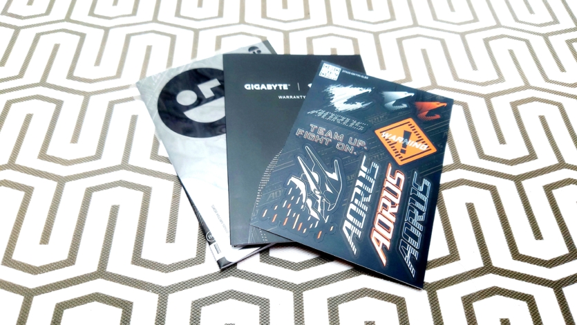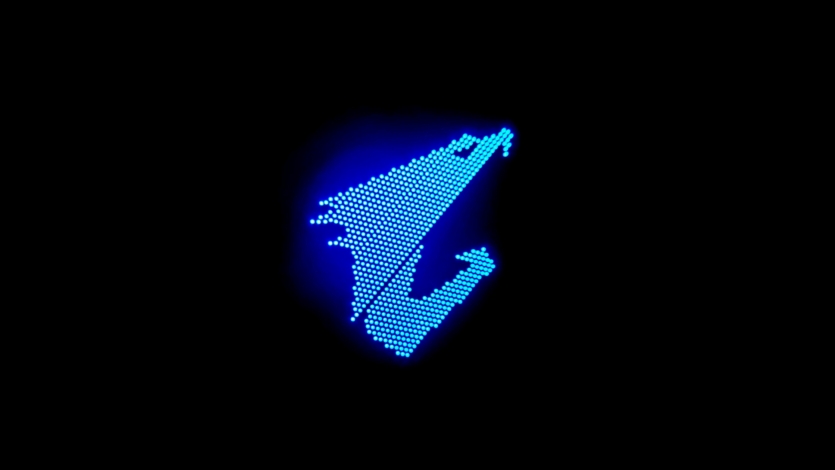 Здесь же находим надпись «TEAM UP. FIGHT NOW.» и эффектный фирменный логотип с матричной подсветкой, что сразу намекает на геймерскую направленность. На задней стороне в самом центре на поверхности проецируется название бренда — AORUS.