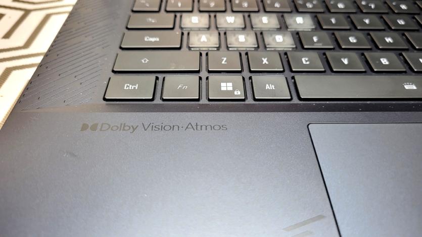 Ноутбук содержит четыре динамика. Средние и высокие частоты неплохо детализированы, басов немного. Звук ощущается объемным и качественным, поэтому обычно даже не хотелось включать внешнюю акустику или наушники.