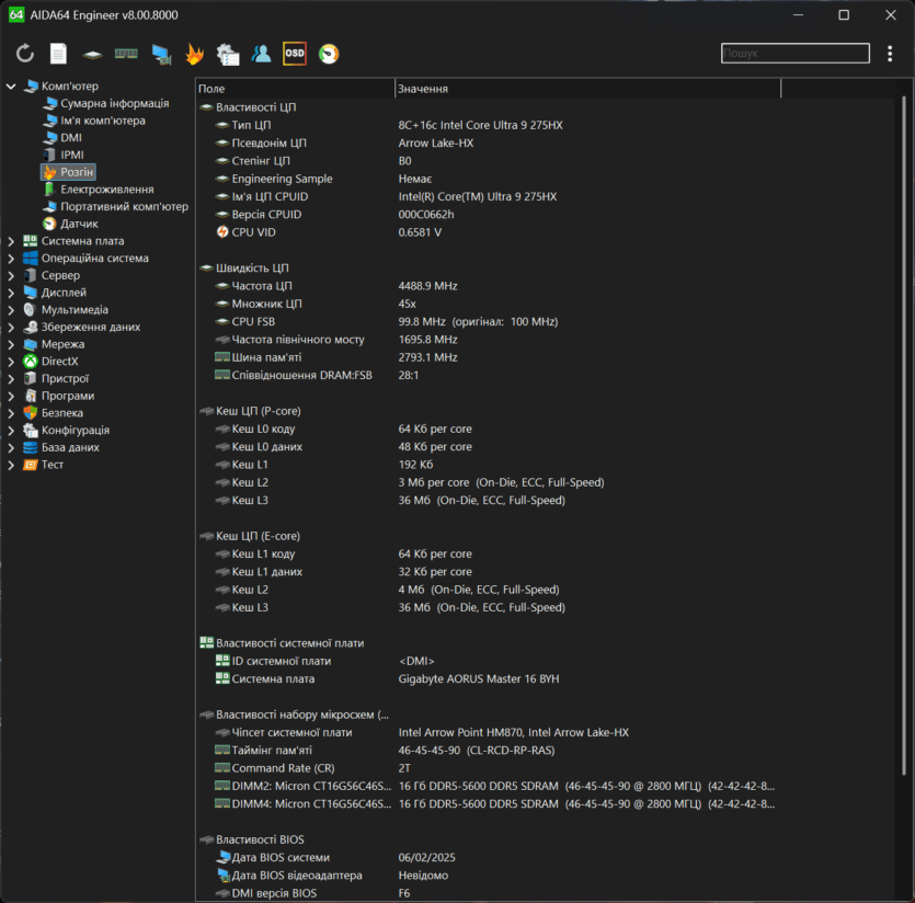 Ноутбук построен на базе мощного процессора Intel Core Ultra 9 275HX, изготовлен по 3-нанометровому техпроцессу. Он включает в себя 8 производительных ядер и 16 энергоэффективных. 36 мегабайт кэш-памяти третьего уровня придутся по душе при работе с требовательным программным обеспечением. К тому же «под крышкой» встроенное видеоядро — Arc Graphics.