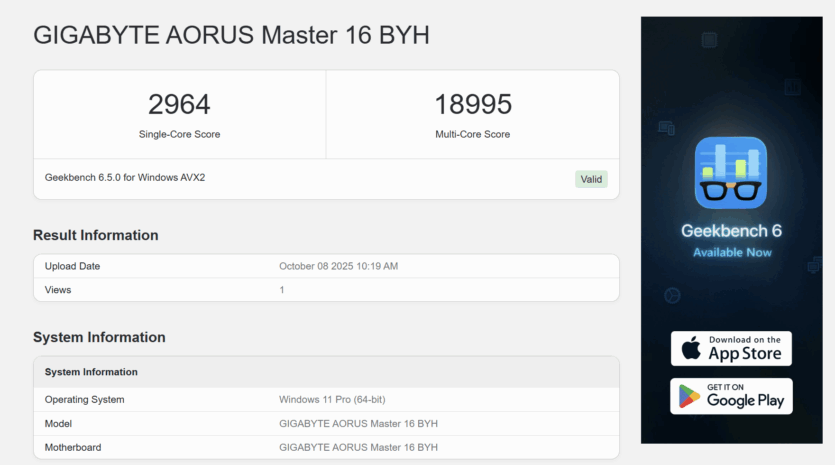 Производительность и тесты Gigabyte AORUS MASTER 16 Gigabyte AORUS MASTER 16