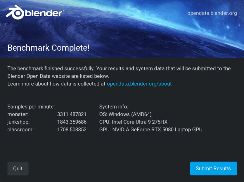 В Blender NVIDIA RTX 5080 laptop при подключении от розетки превосходит показатель десктопной GeForce RTX 5070. В режиме ограниченного энерголимита, когда Gigabyte AORUS MASTER 16 питается исключительно от аккумуляторной батареи, результат в пять раз ниже.