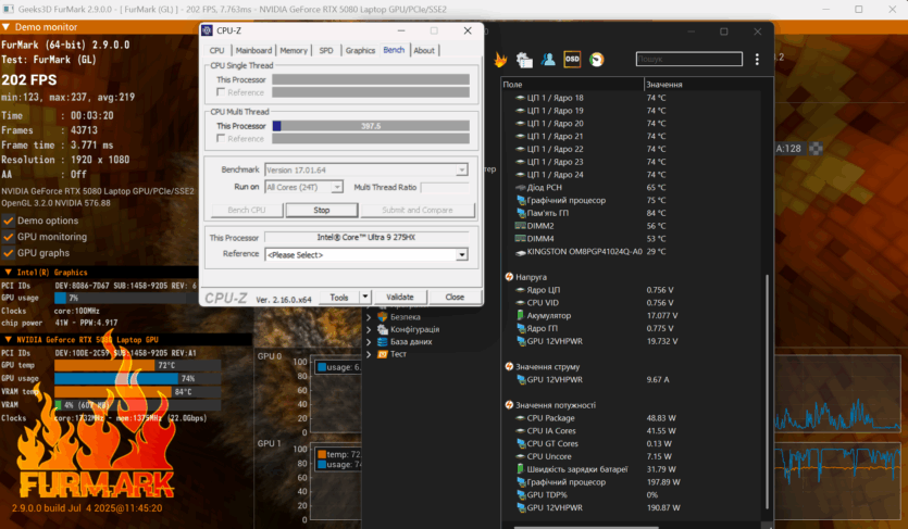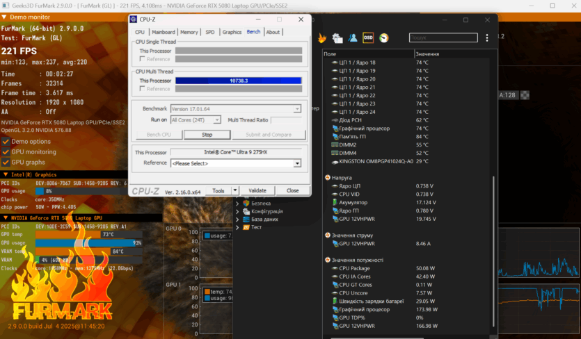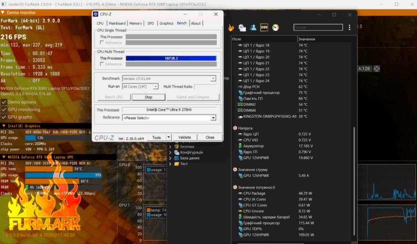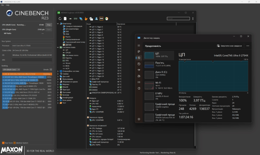 Производительности Intel Core Ultra 9 275HX в тестовых бенчмарках могут позавидовать даже топовые десктопные процессоры. Более 16 тысяч баллов в CPU-Z, более миллиона в Octane 2.0+, и 412 баллов в WebXPRT 4. Это настоящая заявка на лидерство в сегменте лэптопов.