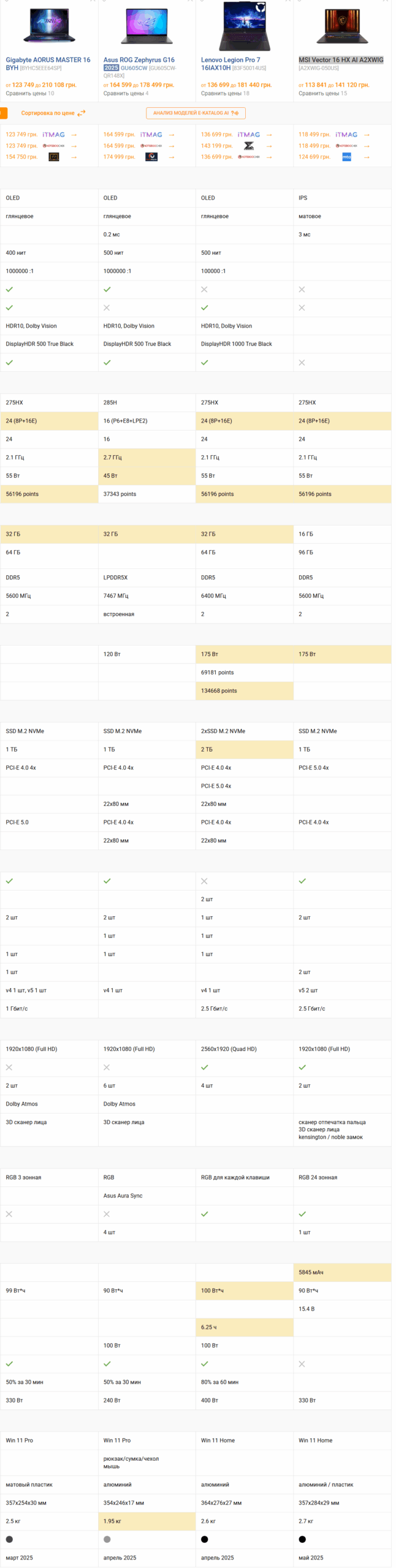 MSI Vector 16 HX AI A2XWIG может привлечь внимание тех пользователей, которые готовы сэкономить на OLED дисплее и хотят видеть в своем лэптопе классический матовый IPS. По остальным характеристикам он напоминает Gigabyte AORUS MASTER 16, за исключением разве что аккумулятора меньшей емкости.