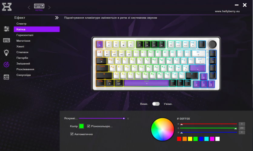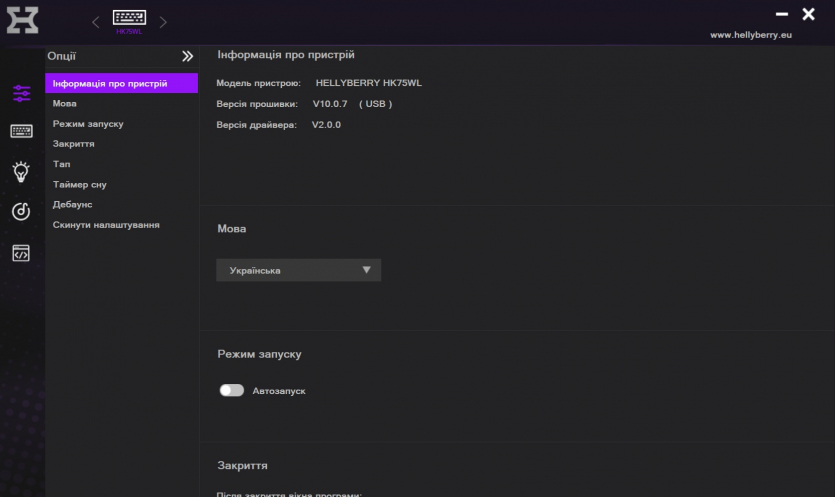 Клавиатура имеет фирменное ПО под названием Hellyberry. Оно очень похоже на программное обеспечение других устройств HATOR, то есть максимально простое, даже аскетичное, но все нужные функции здесь есть.