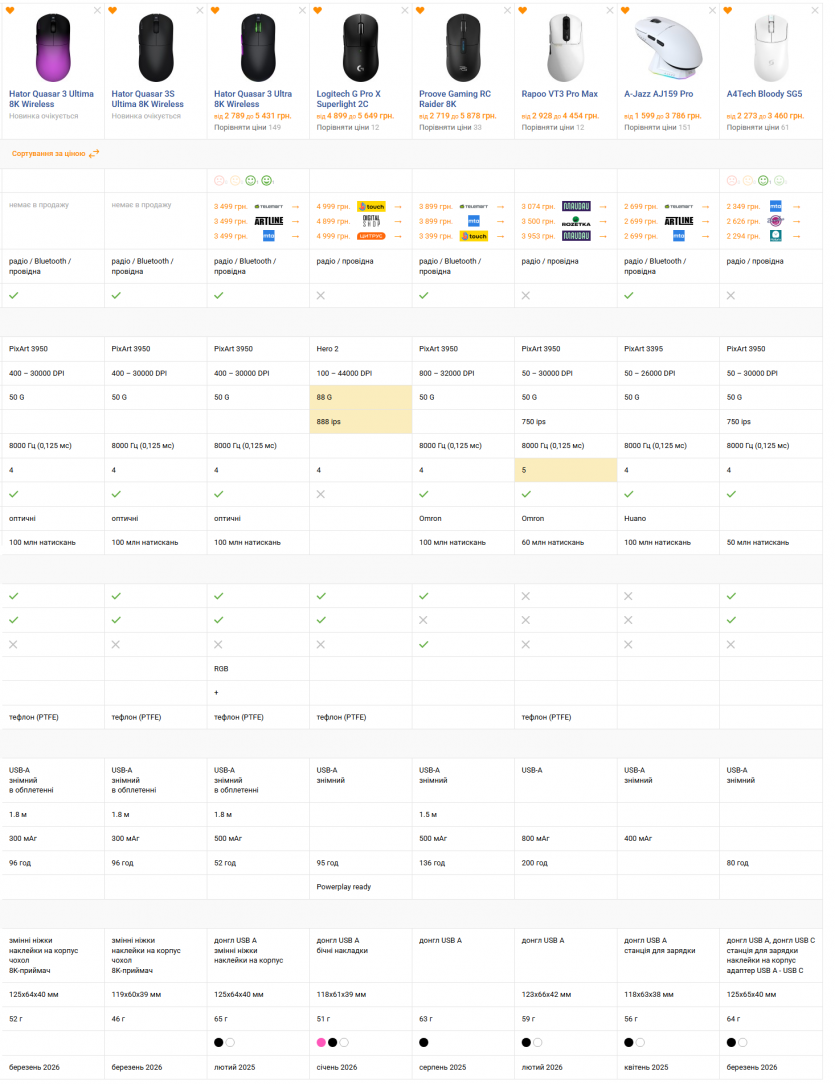 Отдельно стоит упомянуть и внутреннюю конкуренцию в виде Hator Quasar 3 Ultra 8K Wireless. Она немного тяжелее, с большей батареей, но общая концепция похожа. Стоит она от 3 499 гривен.