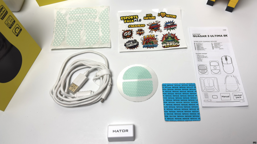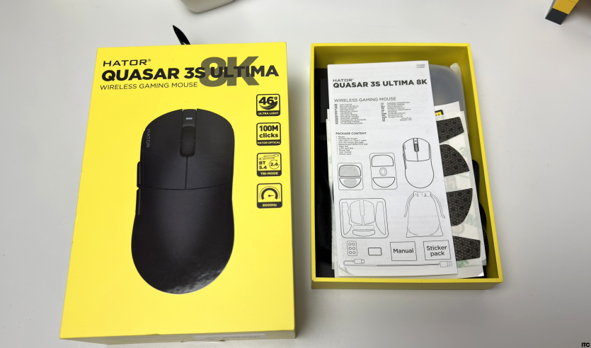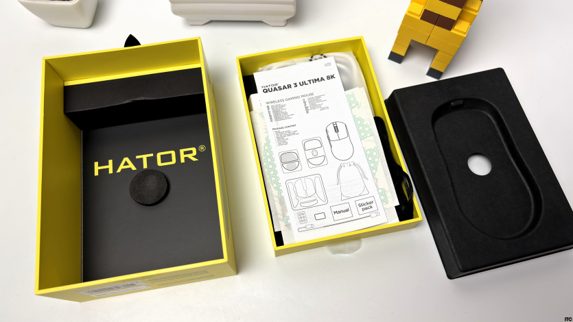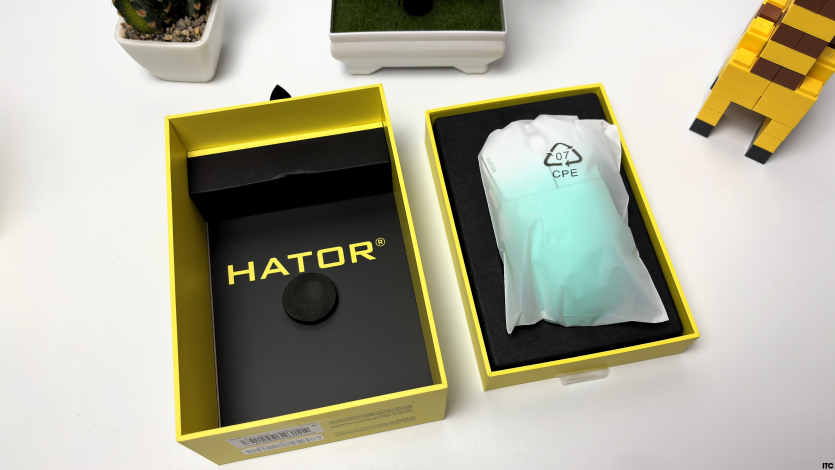 Украинский бренд Hator остается верным своему стилю, поэтому перед нами те же узнаваемые ярко-желтые коробки. На фронтальной части изображение мыши и ключевые характеристики, чтобы сразу понять, с чем имеешь дело. Обратная сторона уже для тех, кто любит копнуть глубже: здесь детальное описание, спецификации и вся техническая «начинка».