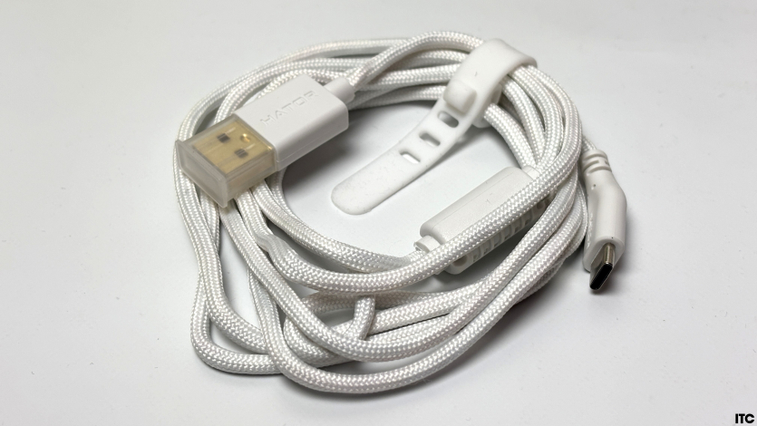 В коробке есть 8K-донгл. Это ключевой элемент, который раскрывает возможности мыши на максимум. Кабель паракорд длиной 1.8 метра, легкий и гибкий. В проводном режиме он не мешает движениям, и это важно, если приходится заряжать мышь прямо во время игры.