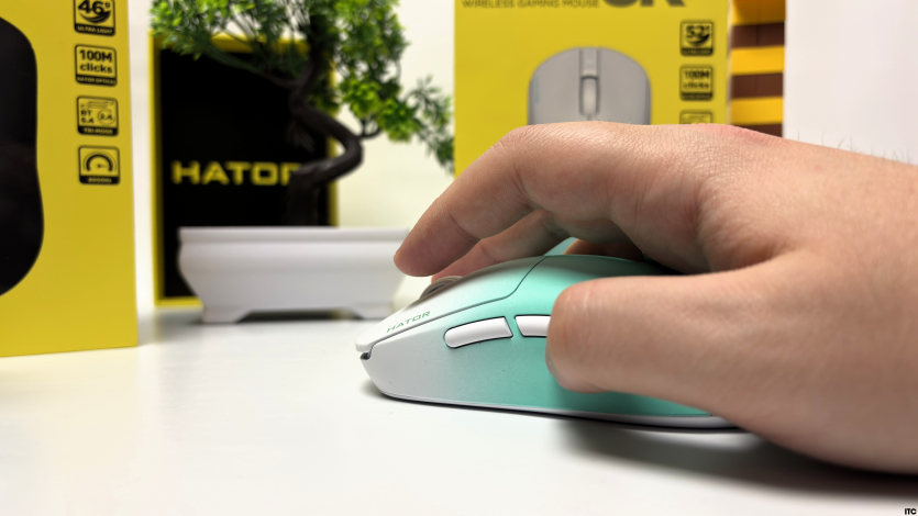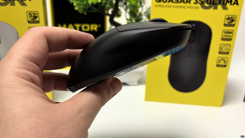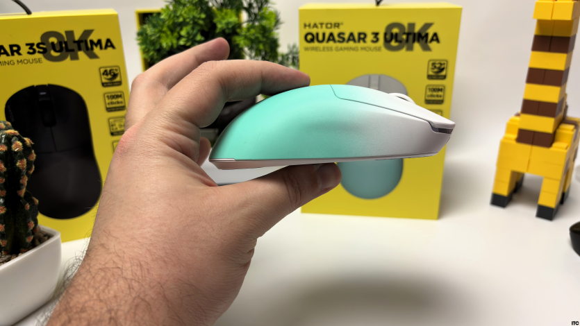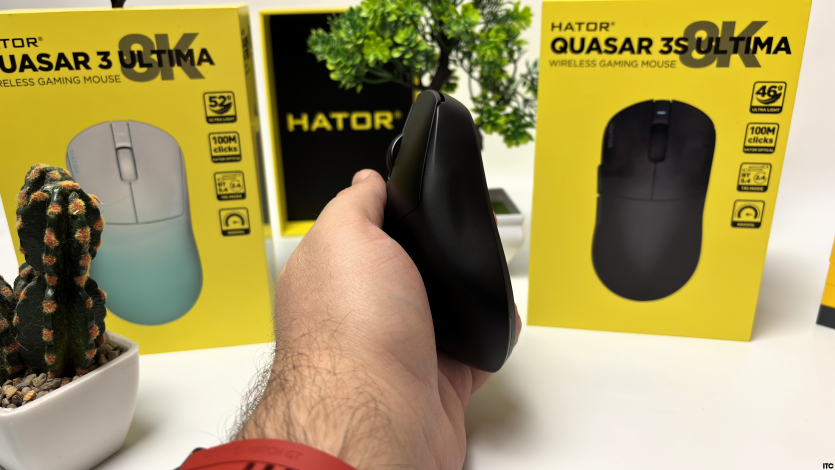 Hator Quasar 3 3S уже более компактная: 119×60×39 мм и всего 46 граммов. Она быстрее «прыгает» по игровой поверхности и лучше подходит под агрессивные движения или claw/fingertip хват.
