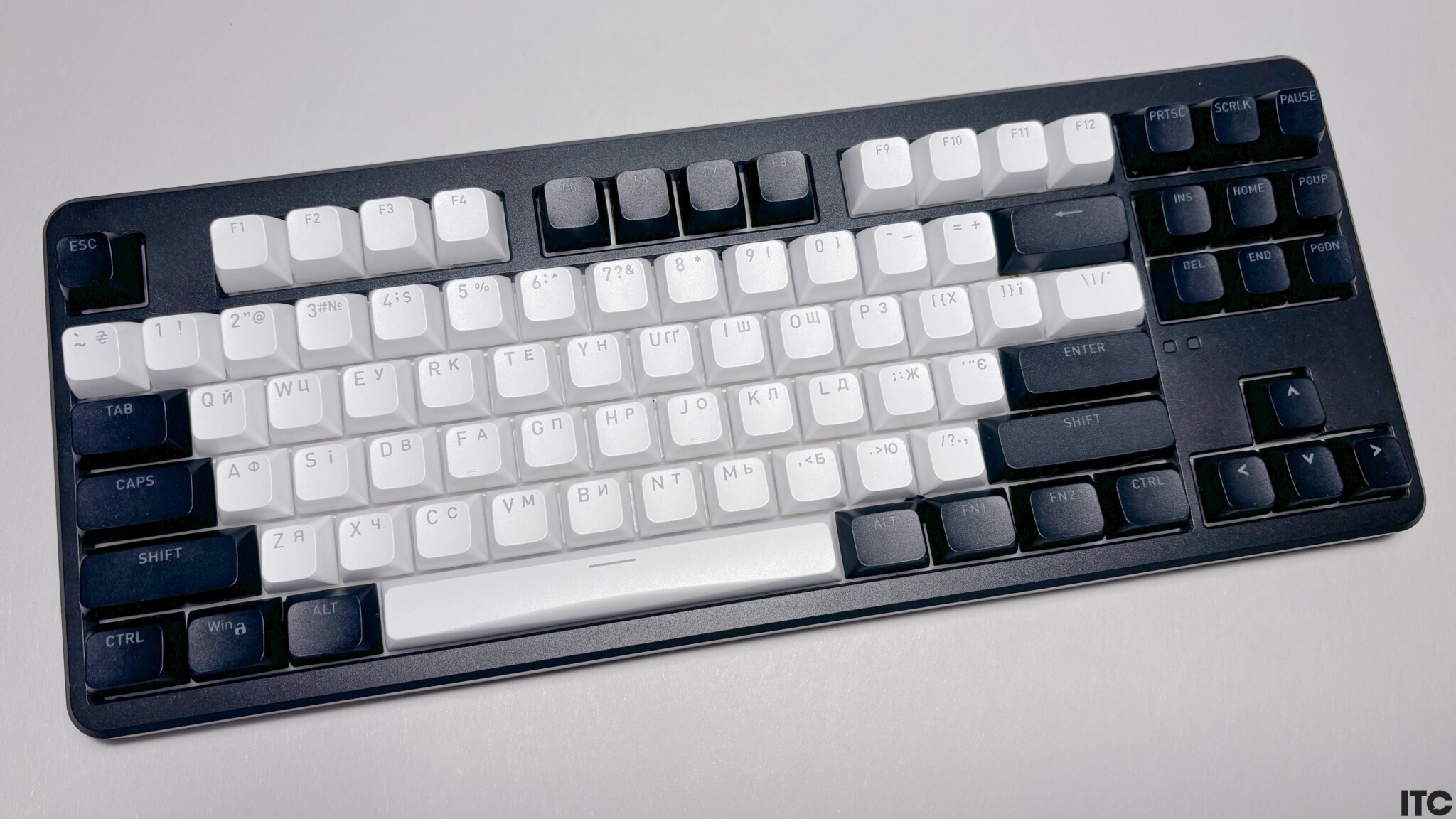 HATOR Rockfall 3 TKL Wireless имеет 87 клавиш и стандартную раскладку ANSI. Обе клавиши Shift длинные и однорядные. Как и Enter. Ряд с клавишами F1-F12 начинается над кнопкой с цифрой 2.
