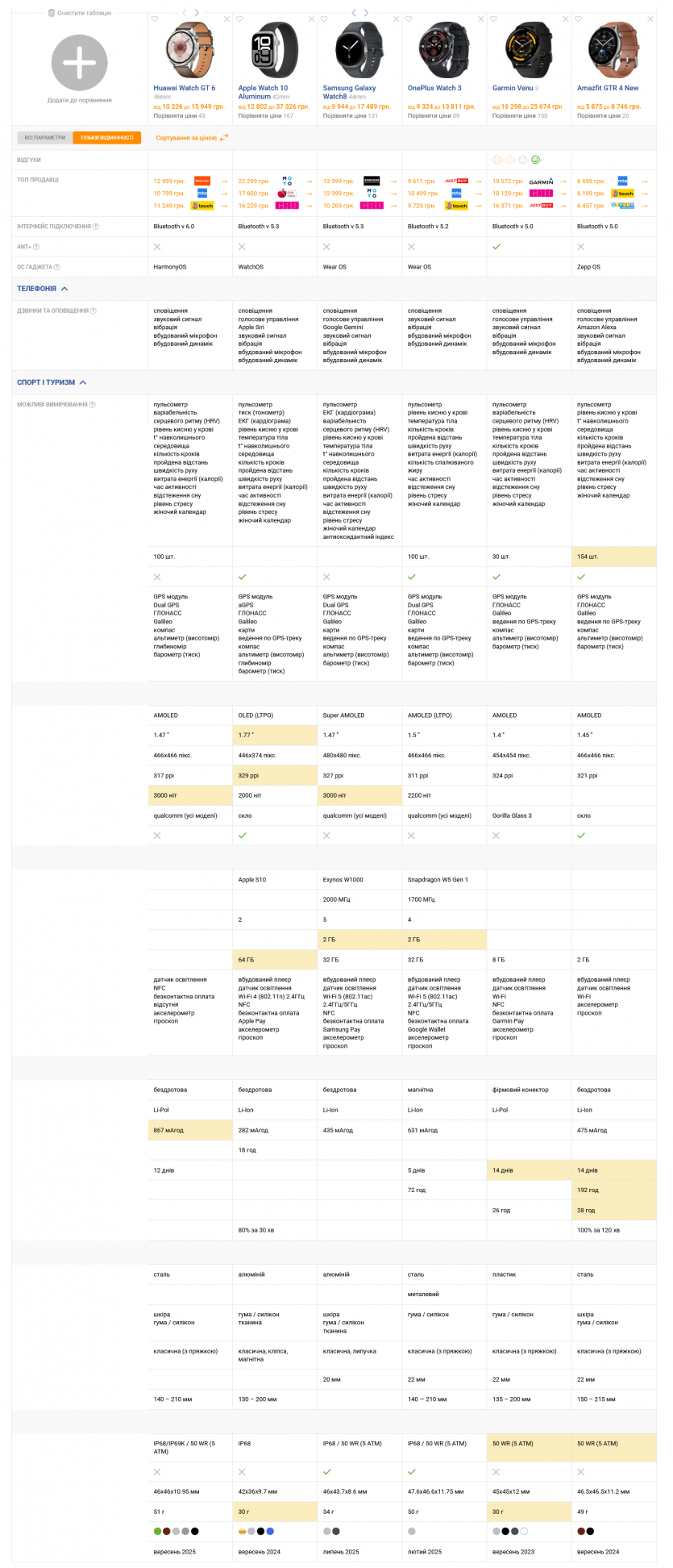 Еще есть Garmin Venu 3 с ценником от 16 300 гривен. Это если вам нужны именно спортивные функции и точность измерений. А также Amazfit GTR 4 (цена от 5875 гривен). Это бюджетная альтернатива с хорошей автономностью, но более низким качеством материалов и менее точными датчиками.