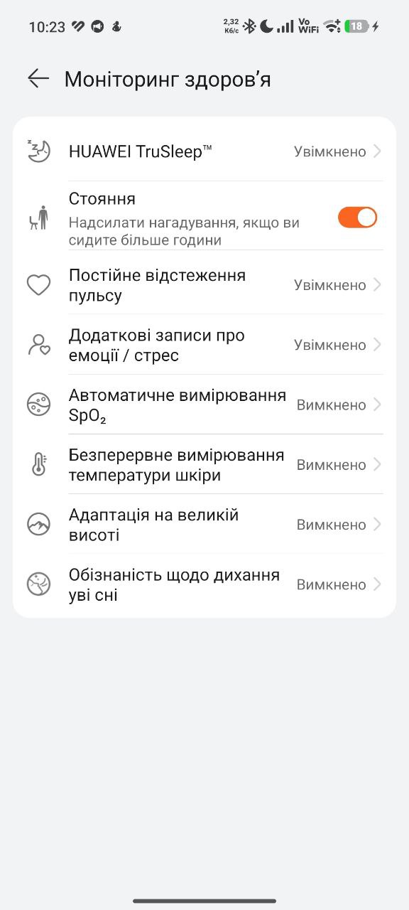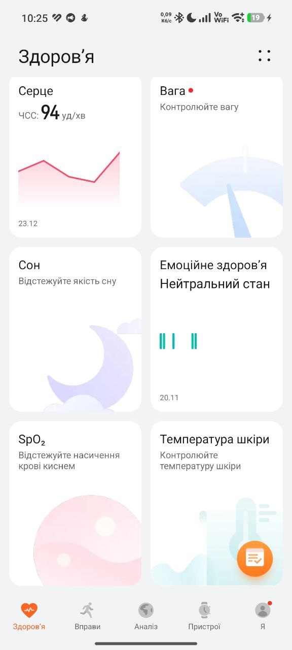 Пульсометр показывает адекватные значения, по крайней мере мне так кажется. Измерение SpO2 занимает около 20 секунд. Отслеживание сна детализированное, с разделением на фазы и подсчетом глубокого сна. Интересной оказалась функция эмоционального благополучия, но ее практическая полезность под вопросом. Сейчас это скорее экспериментальная фишка, чем какой-то реально рабочий инструмент.