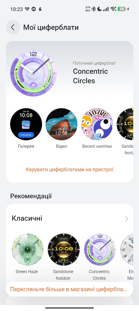 В разделе настроек можно устанавливать новые циферблаты из магазина, настраивать уведомления от приложений, выбирать, какие виджеты отображать, а какие прятать, управлять музыкой на часах, устанавливать будильники и таймеры, обновлять прошивку и многое другое.
