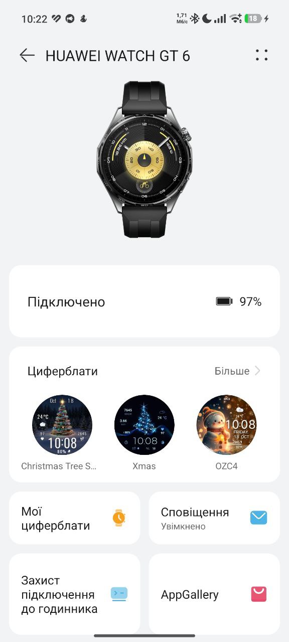Зато автономность Huawei Watch GT 6 превосходит все ожидания, поэтому легко можно забыть о зарядке часов на неделю, а то и больше и это очень круто, особенно во времена постоянных отключений света. Не надо планировать, когда подзарядить часы, не надо носить с собой зарядку или думать от какого повербанка, или станции его постоянно заряжать. По моему мнению, это тот случай, когда одно преимущество компенсирует несколько недостатков.
