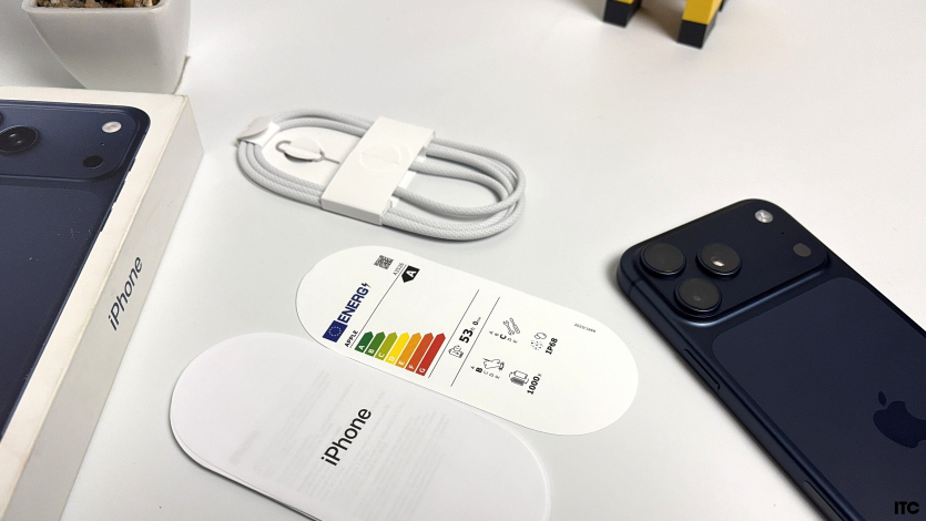 Apple, похоже, уже давно негласно решила, что упаковка не часть впечатления, а просто «контейнер», чтобы достать устройство и сразу забыть о коробке. Внутри только сам смартфон, кабель USB-C — USB-C и немного макулатуры, включая ярлычок энергоэффективности. Никакого адаптера, никакой пленки или чехла — в Купертино это все давно считают «лишним».