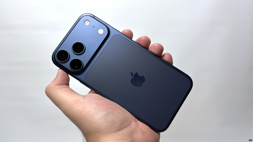Дизайн Apple долго держался в рамках осторожной эволюции, и в этом году компания снова выбрала знакомый путь. Самый яркий штрих — новый модуль камер, который теперь простирается на всю ширину корпуса. Вживую он выглядит внушительно: не просто три линзы, а целая фотоплатформа, занимающая почти треть спинки. Зато смартфон перестал «качаться» на столе, когда лежит без чехла. Это мелочь, но приятная.