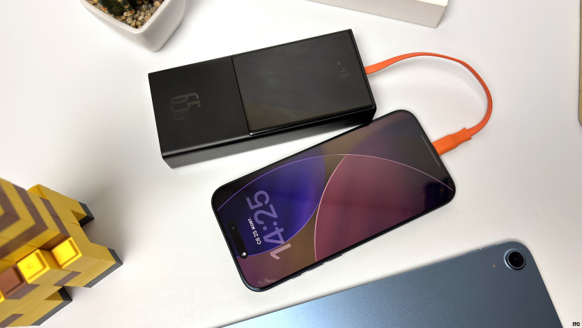 Беспроводная зарядка ограничена 25 Вт, а MagSafe добавляет удобства, но скорость зарядки не увеличивает. Для полной зарядки придется рассчитывать примерно на полтора часа с официальным адаптером или совместимым повербанком.