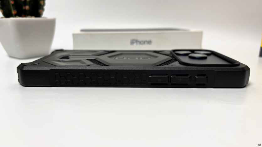 На левом торце iPhone 17 Pro Max, кроме знакомых кнопок регулировки громкости, живет и Action Button — небольшой кусочек «пользовательской свободы» в мире Apple. Можно назначить ему быструю запись заметок, «Шазам», фонарик и тому подобное. Справа — привычная кнопка питания, внизу видим USB-C, динамик и микрофон. Никаких сюрпризов, разве что порт наконец-то стал быстрее, и теперь это не просто «для галочки».