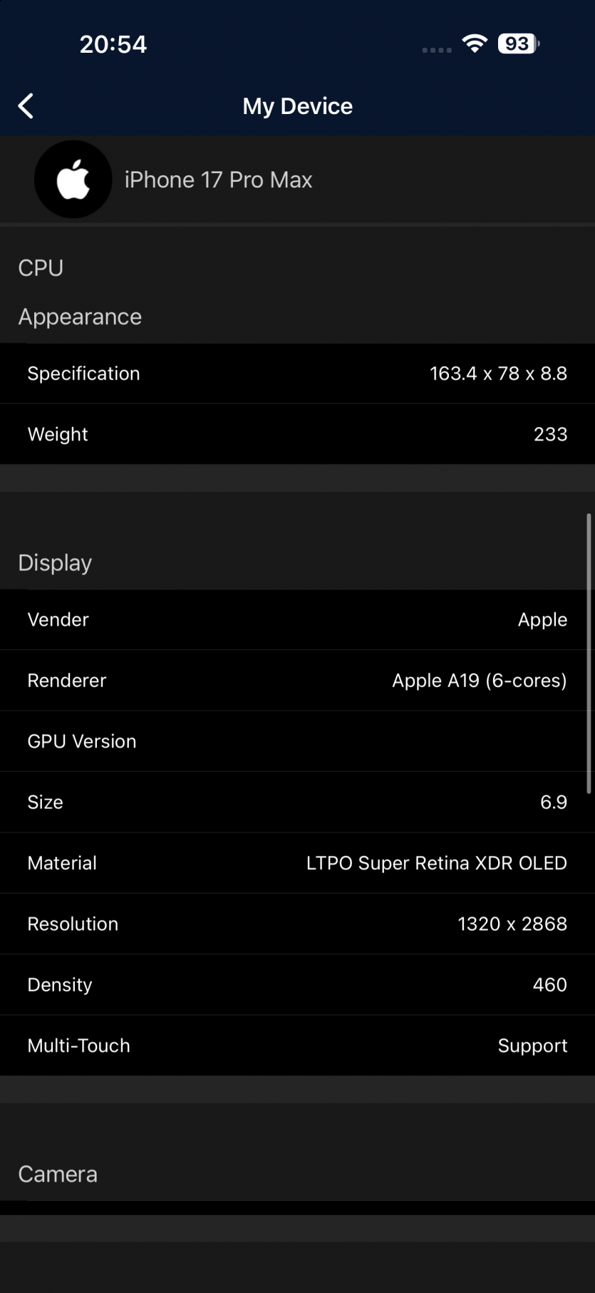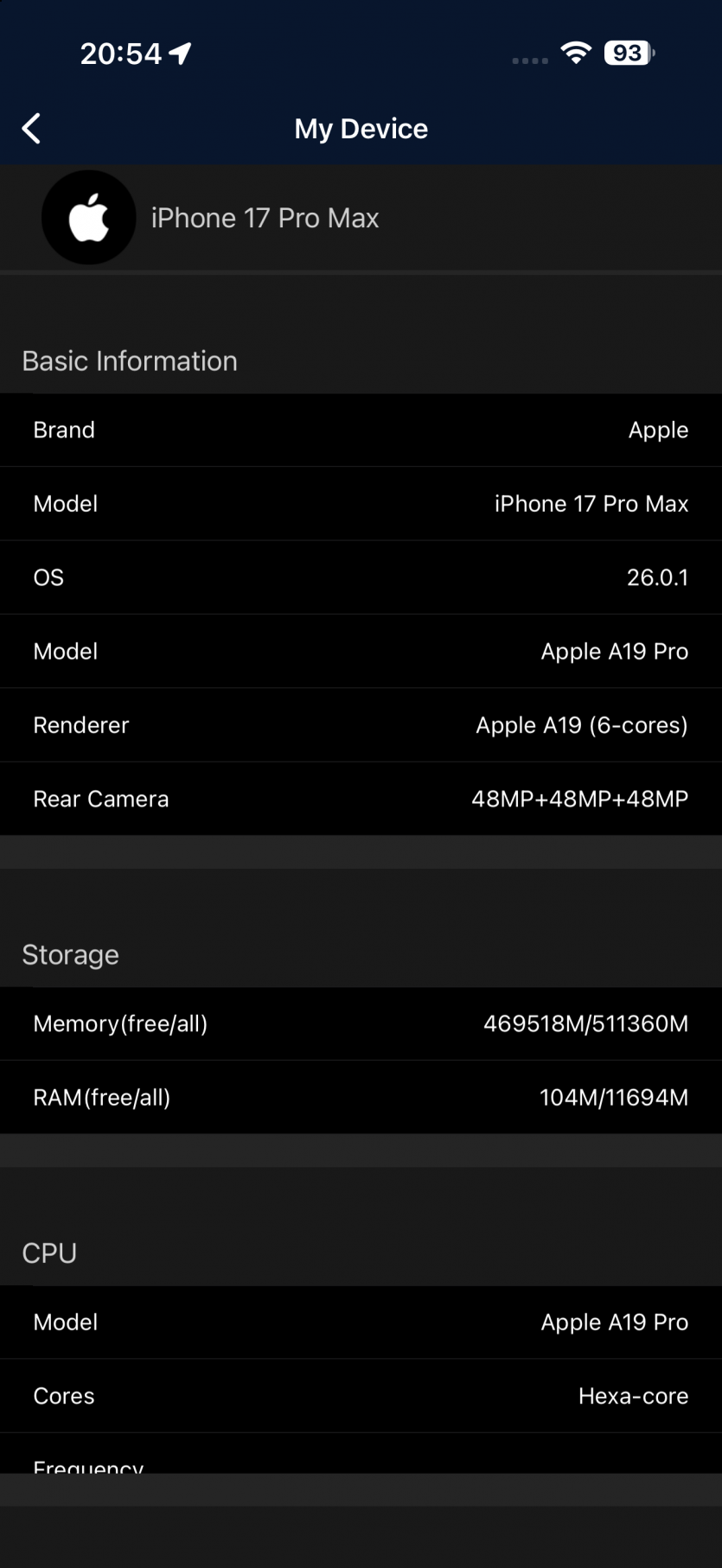 iPhone 17 Pro Max получил чип A19 Pro с запасом мощности, который больше напоминает миниверсию MacBook, чем смартфон. Это 3-нанометровый процессор от TSMC с 6-ядерным CPU, 6-ядерным GPU с аппаратной трассировкой лучей и 16-ядерным Neural Engine, который оперирует ИИ-задачами, как кардиолог скальпелем.