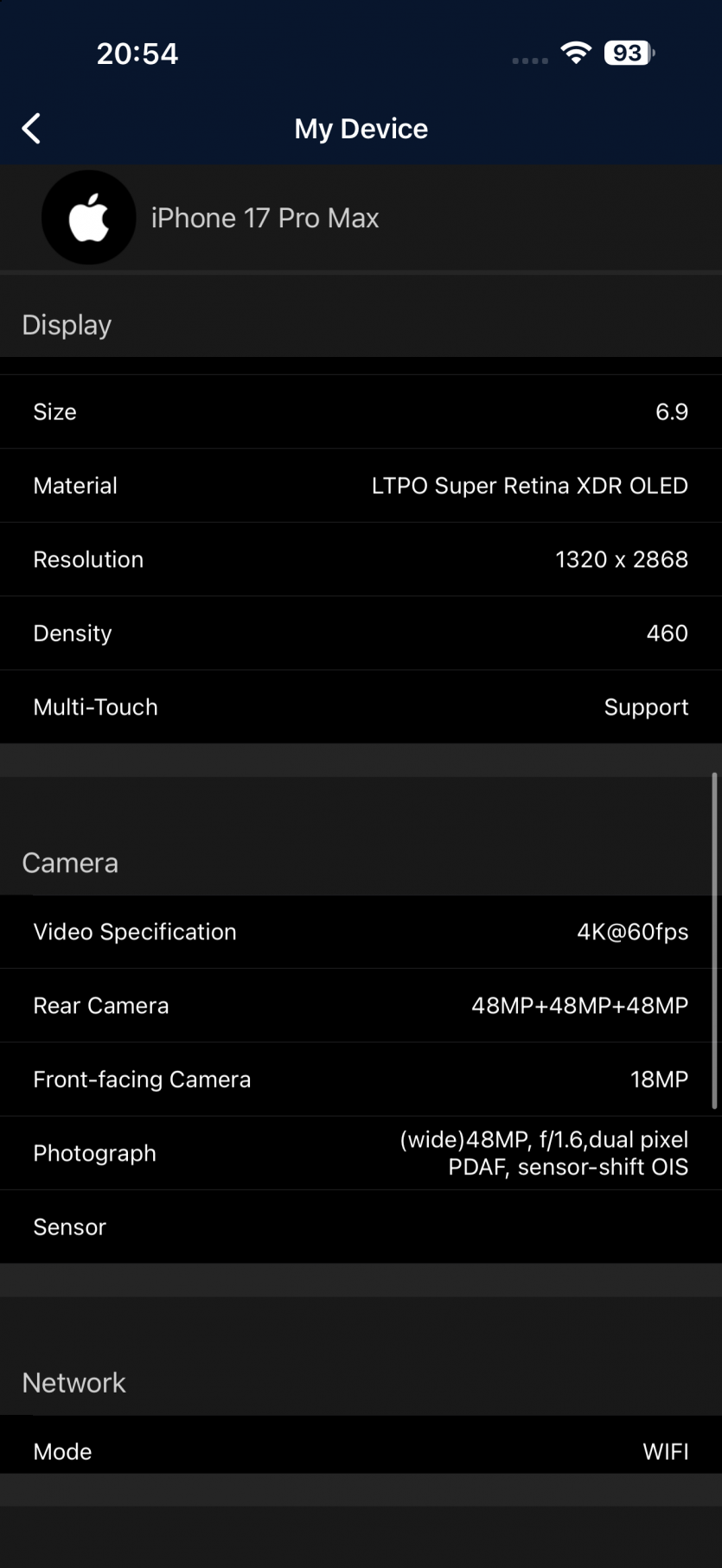 | Экран | Super Retina XDR (OLED), 6.9 дюйма, 2868х1320 пикселей (19.5:9), 460 ppi, ProMotion от 1 до 120 Гц, пиковая яркость до 3000 нит, HDR10+, Dolby Vision |