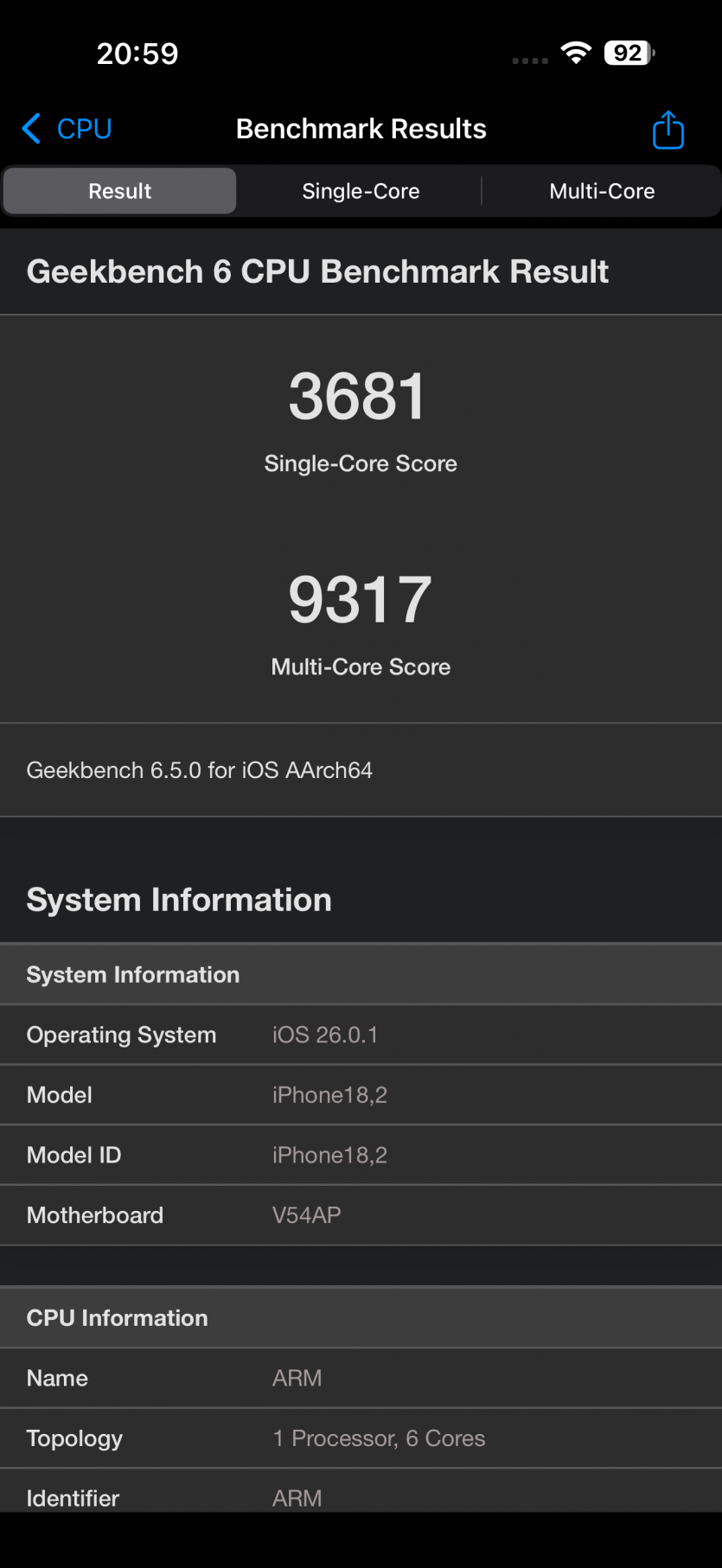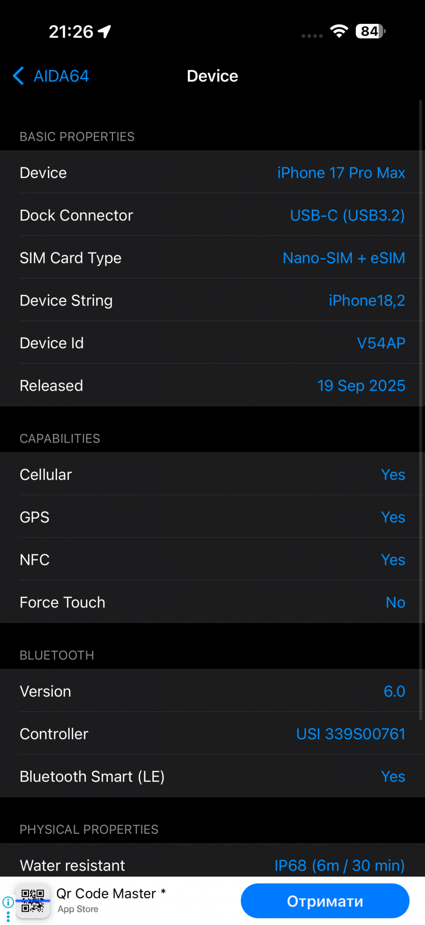 | Операционная система | iOS 26 |