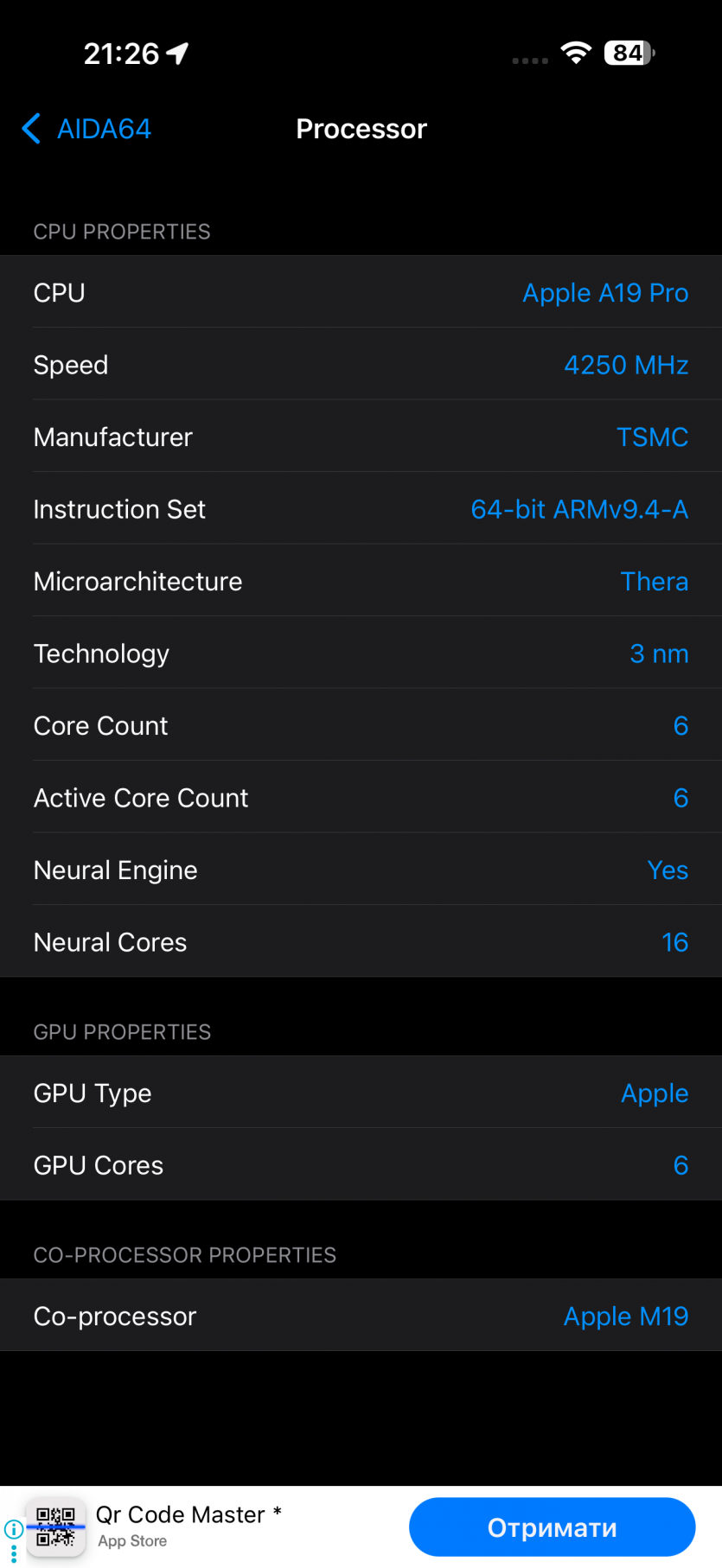| Процессор | Apple A19 Pro, 6-ядерный |