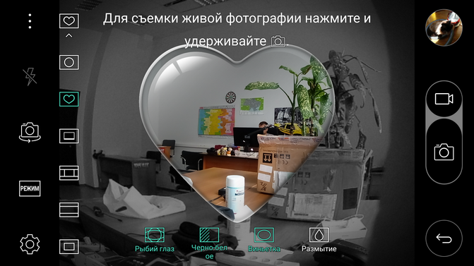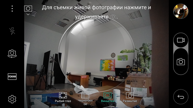 Кроме этого, смущает плохая адаптированность к макросъемке — смартфон нормально фокусируется с расстояния от 15 см, отсутствие режима HDR и ручных настроек съемки. Наверное, это должны компенсировать различные режимы «Коллаж» и подобные, где вы можете вставить в центр кадра изображение с основной камеры, а в качестве фона картинку с широкоугольной.