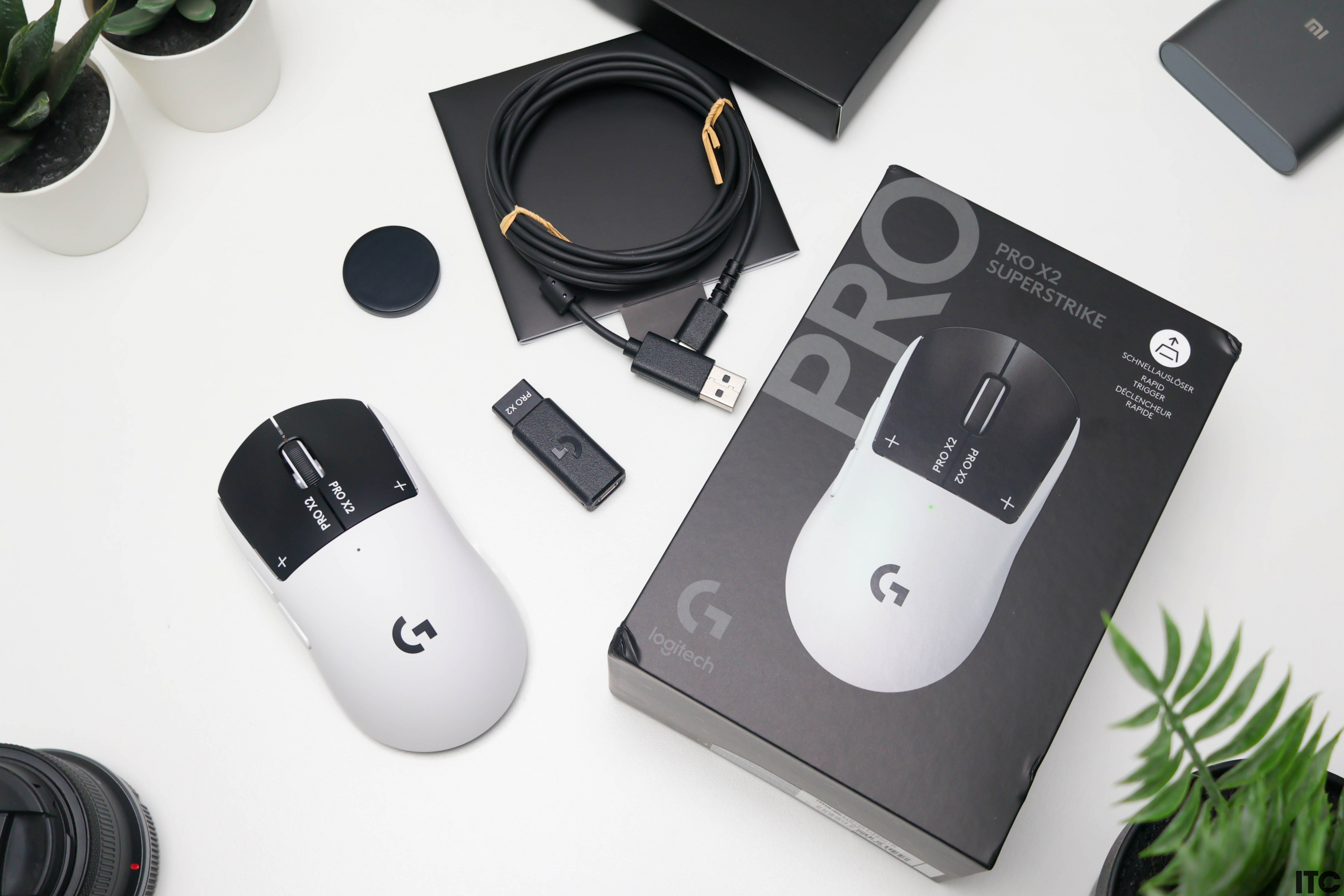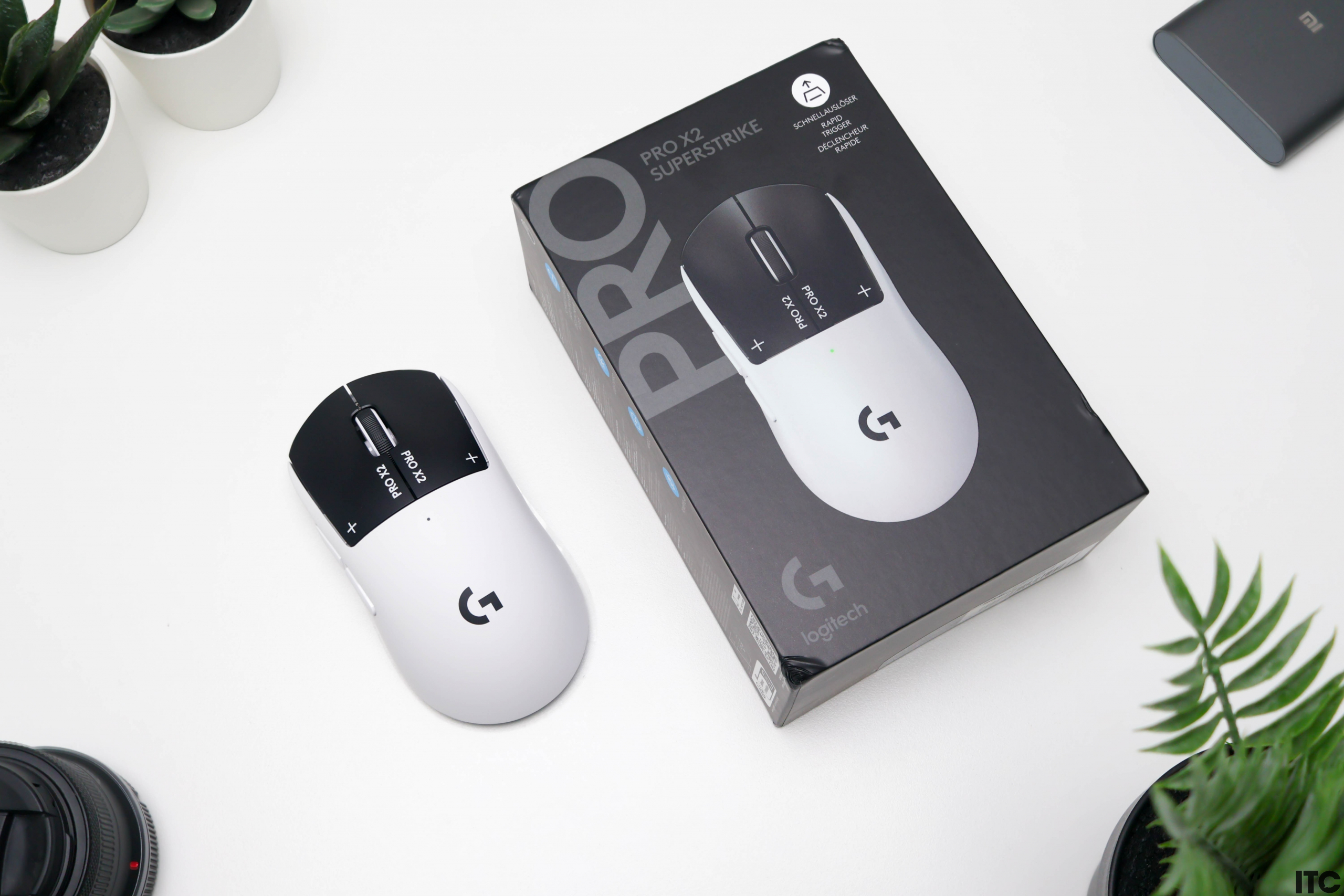Первое, что бросается в глаза после распаковки Logitech G PRO X2 Superstrike, это двухцветное черно-белое оформление игровой мышки. Так она напоминает панду и еще здесь довольно агрессивное брендирование с надписями «X2», «PRO X2» и «SUPERSTRIKE» на корпусе.