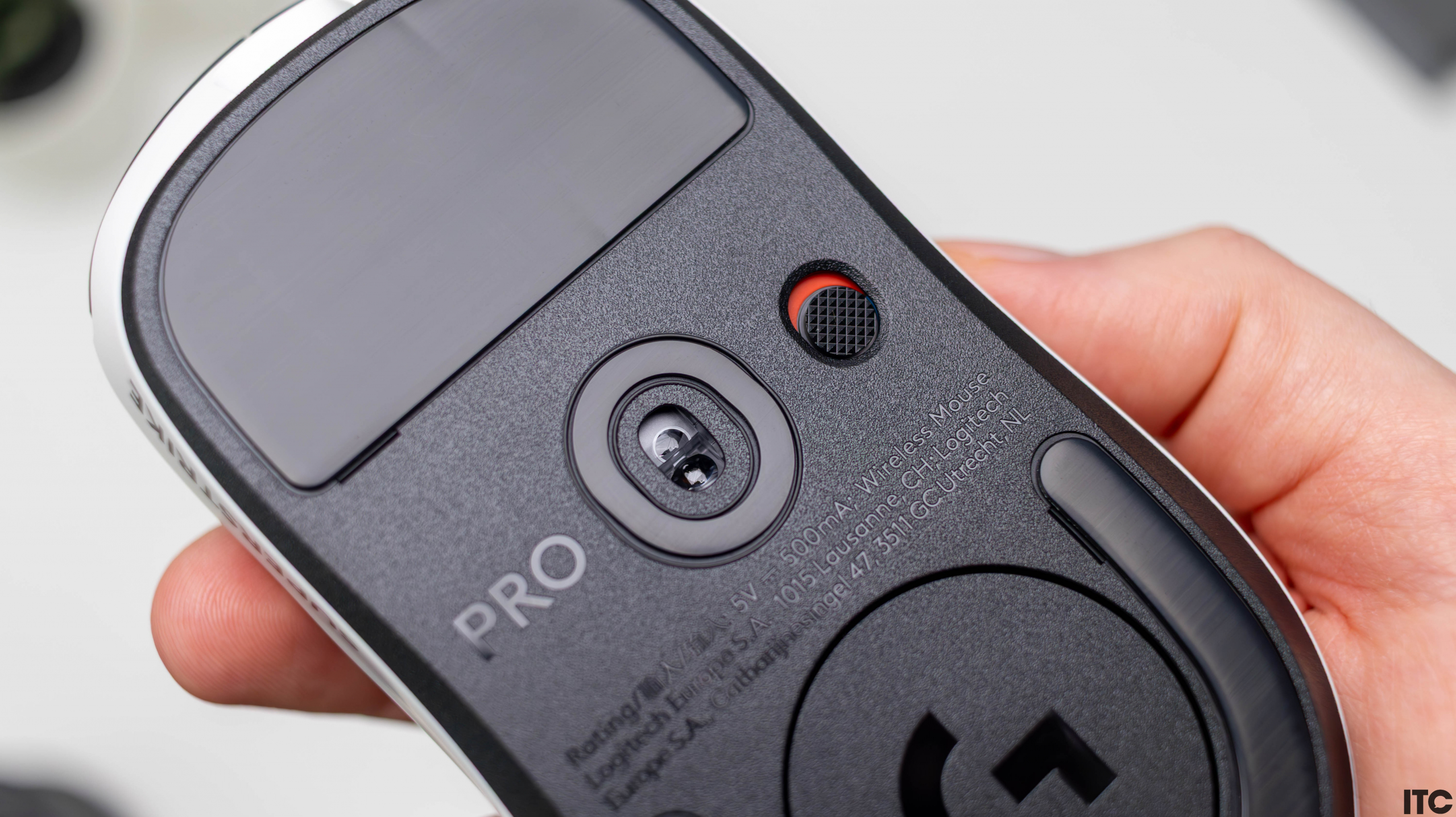 На левом торце видим пару боковых клавиш, на правом ничего нет. На «пузе» есть надпись G, а на передней части игровой мышки есть порт USB-C для зарядки. На дне разместили два больших тефлоновых глайдера, круглую крышку, которая закрывает место для хранения USB-донгла, сенсор и кнопку выключения/включения мышки. Кнопку переключения DPI не добавили и это точно вызовет нарекания части аудитории.