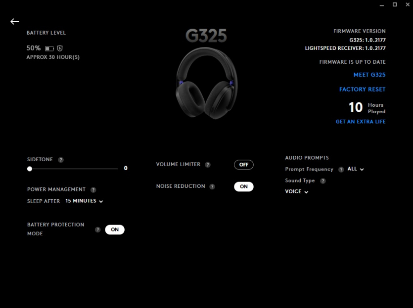 Звуковой профиль Logitech G325 LIGHTSPEED ориентирован на игры и в целом его можно охарактеризовать как «универсальный». Средние и высокие частоты у наушников выразительные, поэтому различные шаги и звуки перезарядки в шутерах слышны хорошо, а главное четко. Пространственное позиционирование приятное, заявлена поддержка Windows Sonic и Dolby Atmos.
