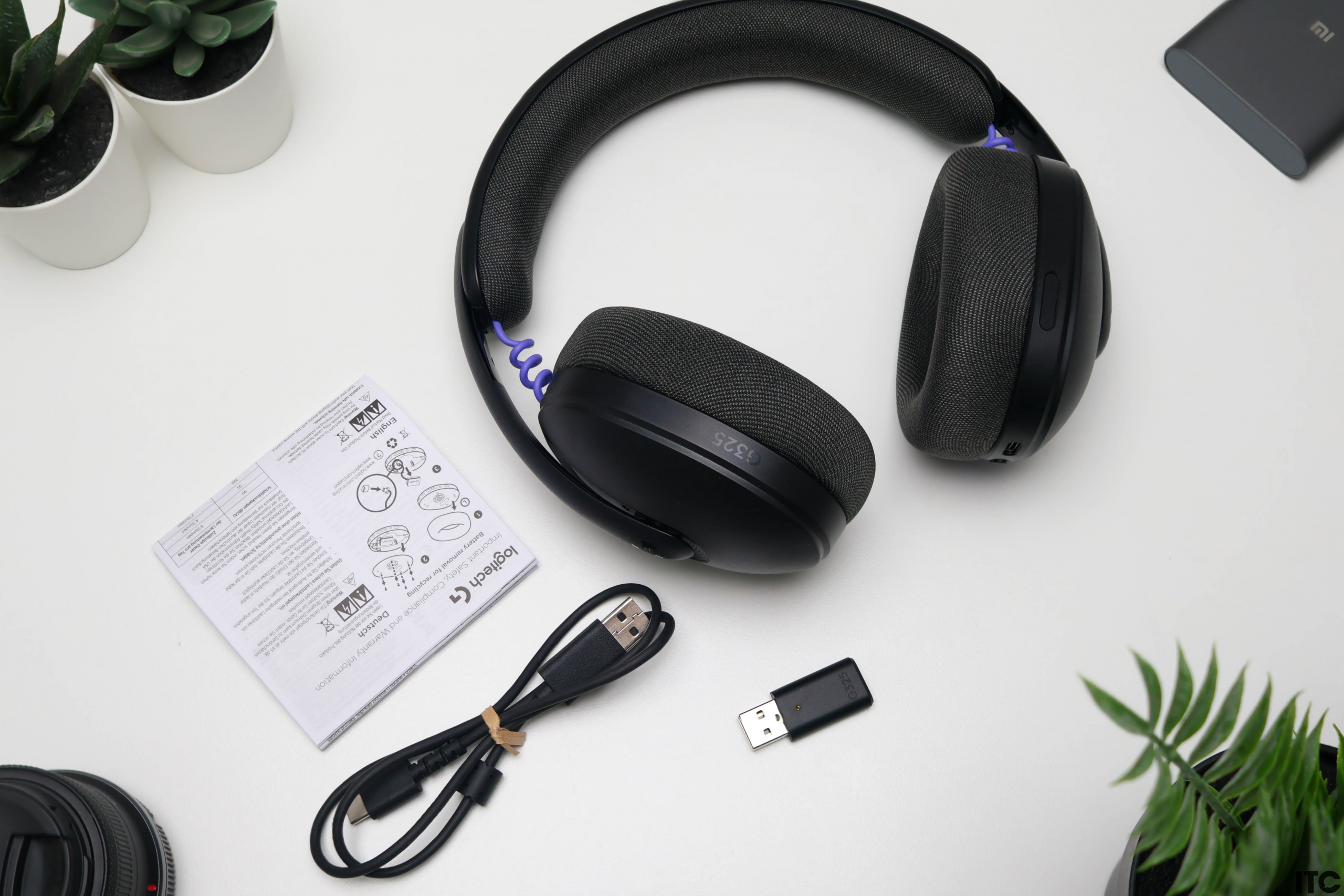 Внутри находятся сами наушники, беспроводной USB-ресивер LIGHTSPEED, зарядный кабель USB-C и пользовательская документация.