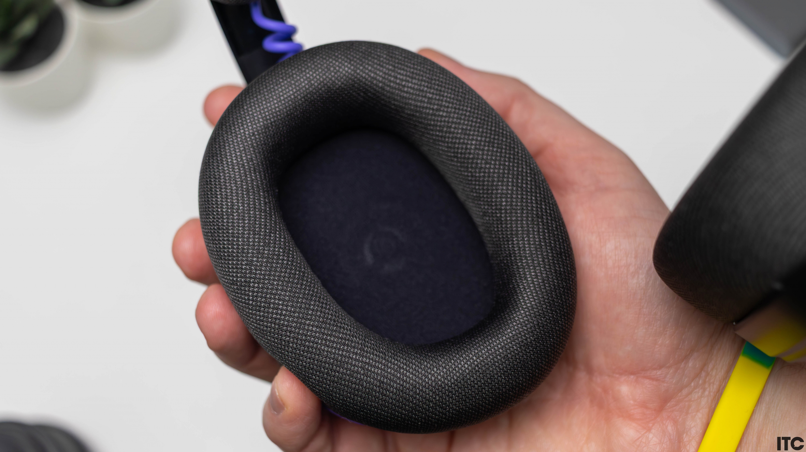 Амбушюры у модели такие же, как и на оголовье. То есть сделаны из ткани, а внутри находится пена с эффектом памяти. Такие амбушюры не перегревают уши и при этом хорошо прилегают к голове. От чего пассивная шумоизоляция здесь на нормальном уровне как для закрытой конструкции, поэтому фоновые звуки заметно приглушаются, хотя полноценного ANC нет и не стоит его ожидать в этой категории.