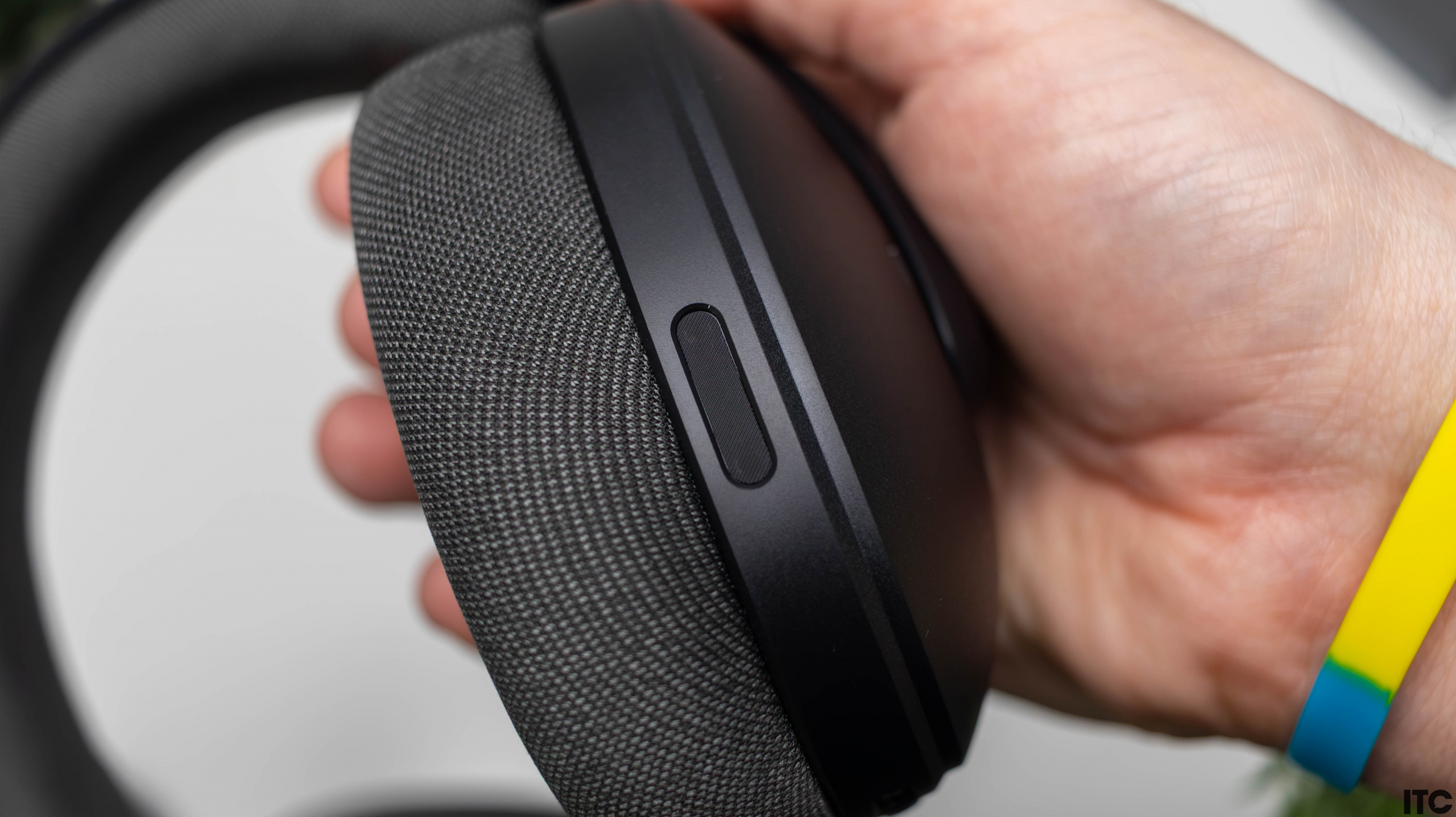 Все элементы управления беспроводной гарнитурой разместили на левой чашке. Здесь видим светодиодный индикатор, кнопку выключения/включения, кнопку подключения по Bluetooth, механические клавиши громкости и кнопку, которая включает или выключает микрофон.