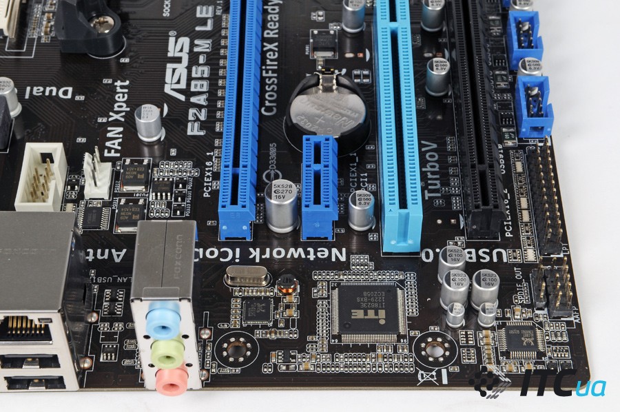 К ASUS F2A85-M LE можно одновременно подключить до трех вентиляторов. В районе VRM CPU нашлось место COM-порту, внизу РСВ распаяна колодка для подсоединения архаичного LPT.