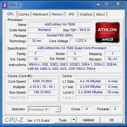 Очень уж сильно усердствовать в этом деле не стоит. Все же плата не предназначена для серьезного разгона, особенно когда речь идет о форсировании чипов с TDP 100 Вт. Пожалуй, для длительной работы мы рекомендовали бы ограничиться частотами, которые достижимы без дополнительного повышения напряжения питания процессора. В случае c нашим экземпляром Athlon X4 760K, это 4300 МГц.