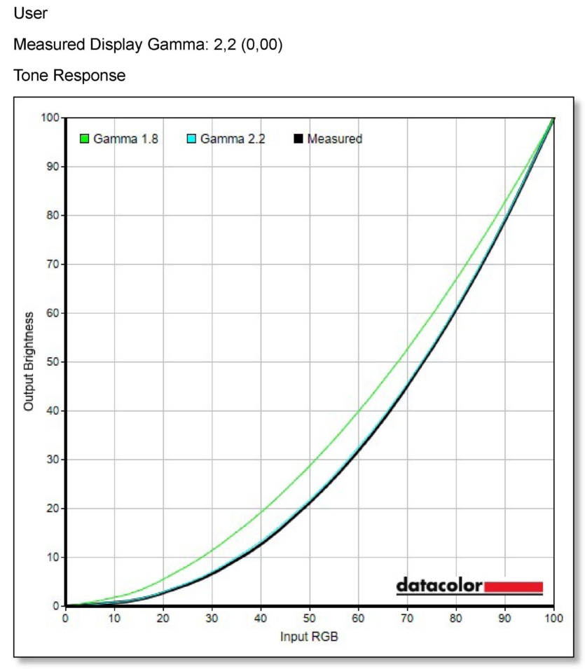 Гамма выставлена на эталонном уровне — 2.2 в режиме User. Цветовая температура при этом также на отличном уровне ≈ 6 440К. Таким образом изображение не переходит в излишнюю «холодность», или чрезмерную «теплоту» цветовой температуры.