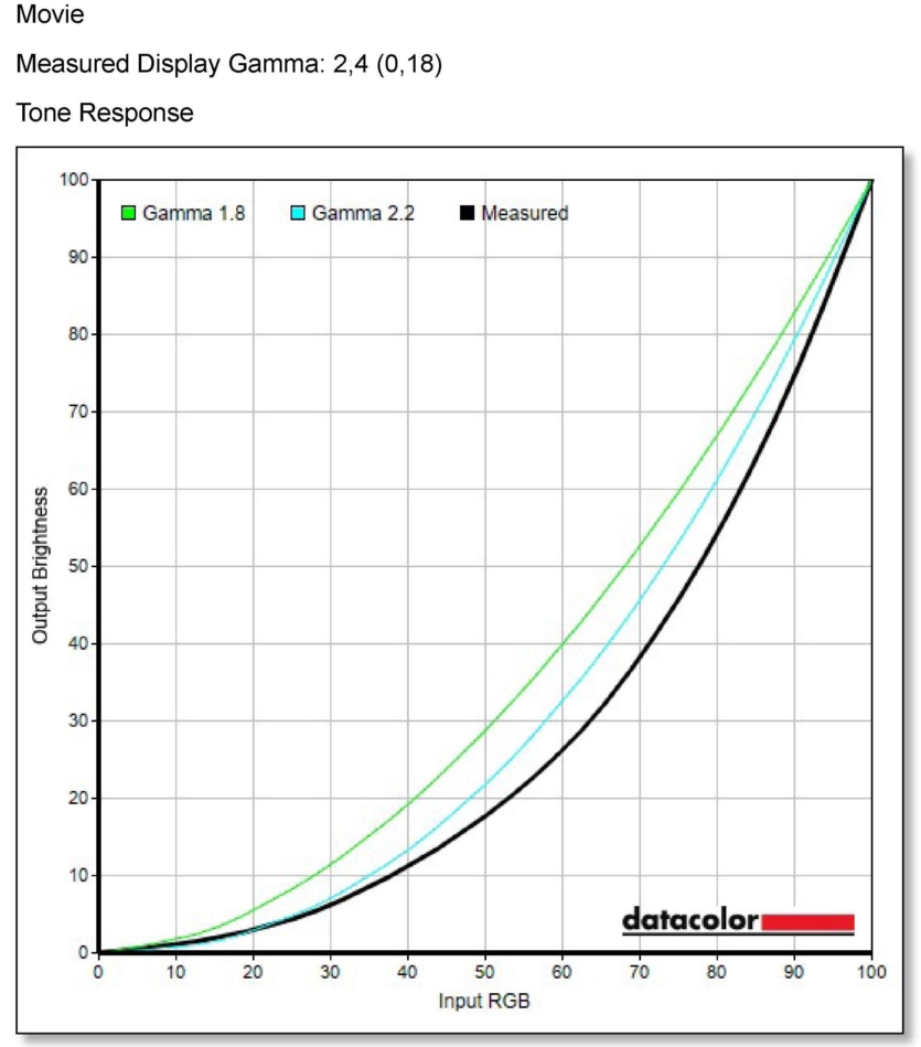 В режиме Movie гамма вырастает до 2.4, а изображение несущественно опускается в теплый спектр, так же как и в режиме Office.