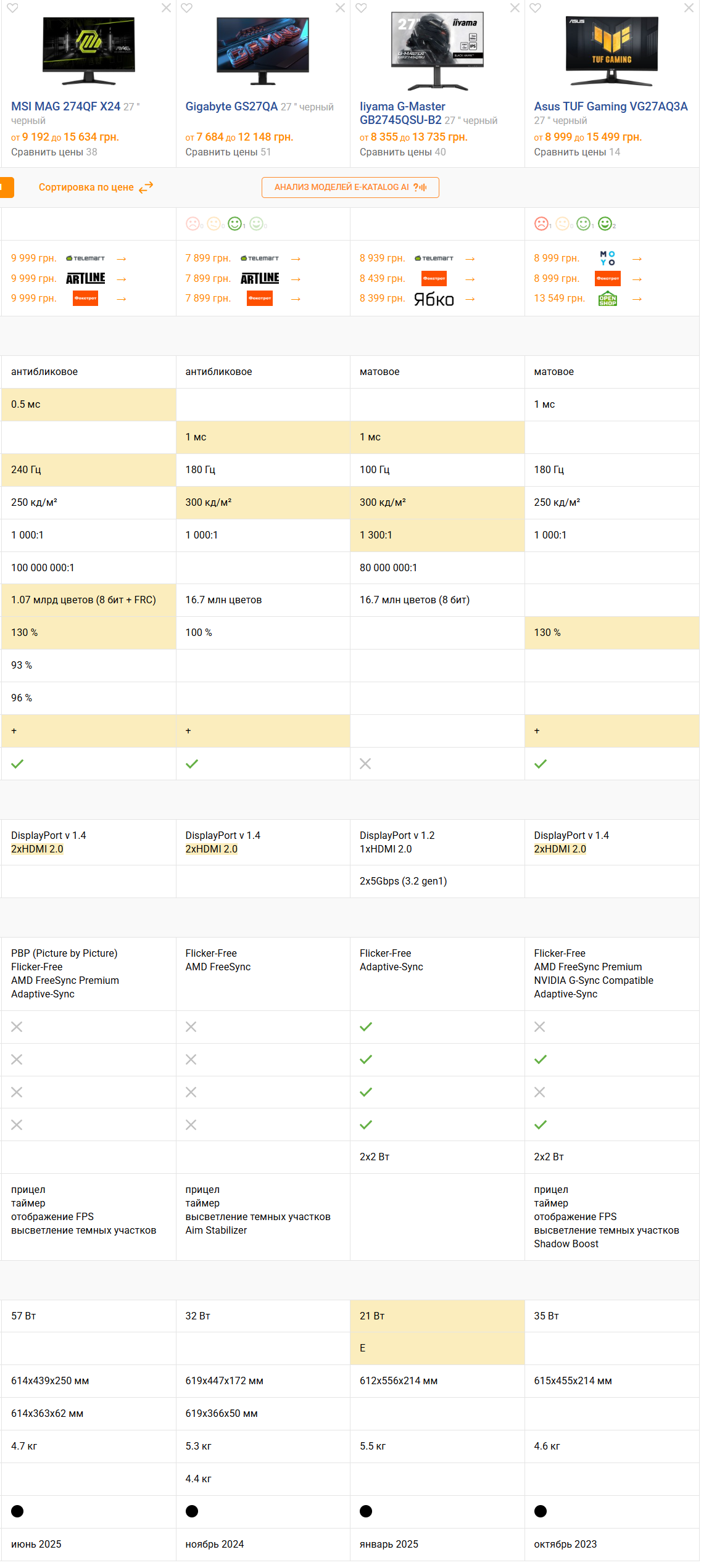 QuadHD стал довольно популярным форматом, поэтому конкурентов хватает, хотя им не поздоровится с героем нашего обзора MSI MAG 274QF X24 можно приобрести по цене 9 999 гривен. Если же в цене для вас многовато «девяток», то можно посмотреть на другие варианты.