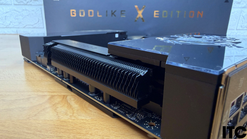 Godlike X Edition также имеет 27 силовых линий (Duet Rail Power System) со Smart Power Stage мощностью 110A, объединяющей в одном корпусе MOSFET-транзисторы и интеллектуальный драйвер. Более того, массивные радиаторы намекают, что охлаждение здесь не просто декоративный элемент, а мощный инструмент для отвода тепла.