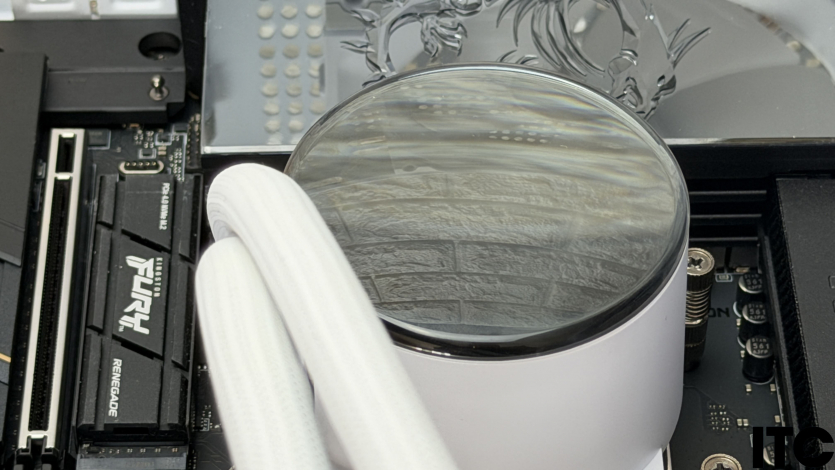 Тестовый накопитель Kingston FURY Renegade 3D NAND TLC 4TB комплектуется массивным радиатором, но на фоне такой системы он выходил за рамки общего дизайна не в лучшую сторону.